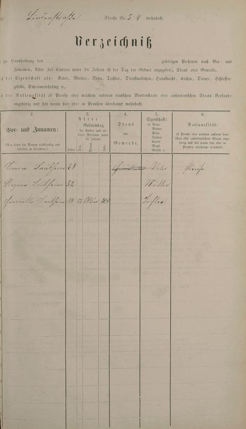 Personenstandsaufnahme zur Klassensteuerrolle für 1873