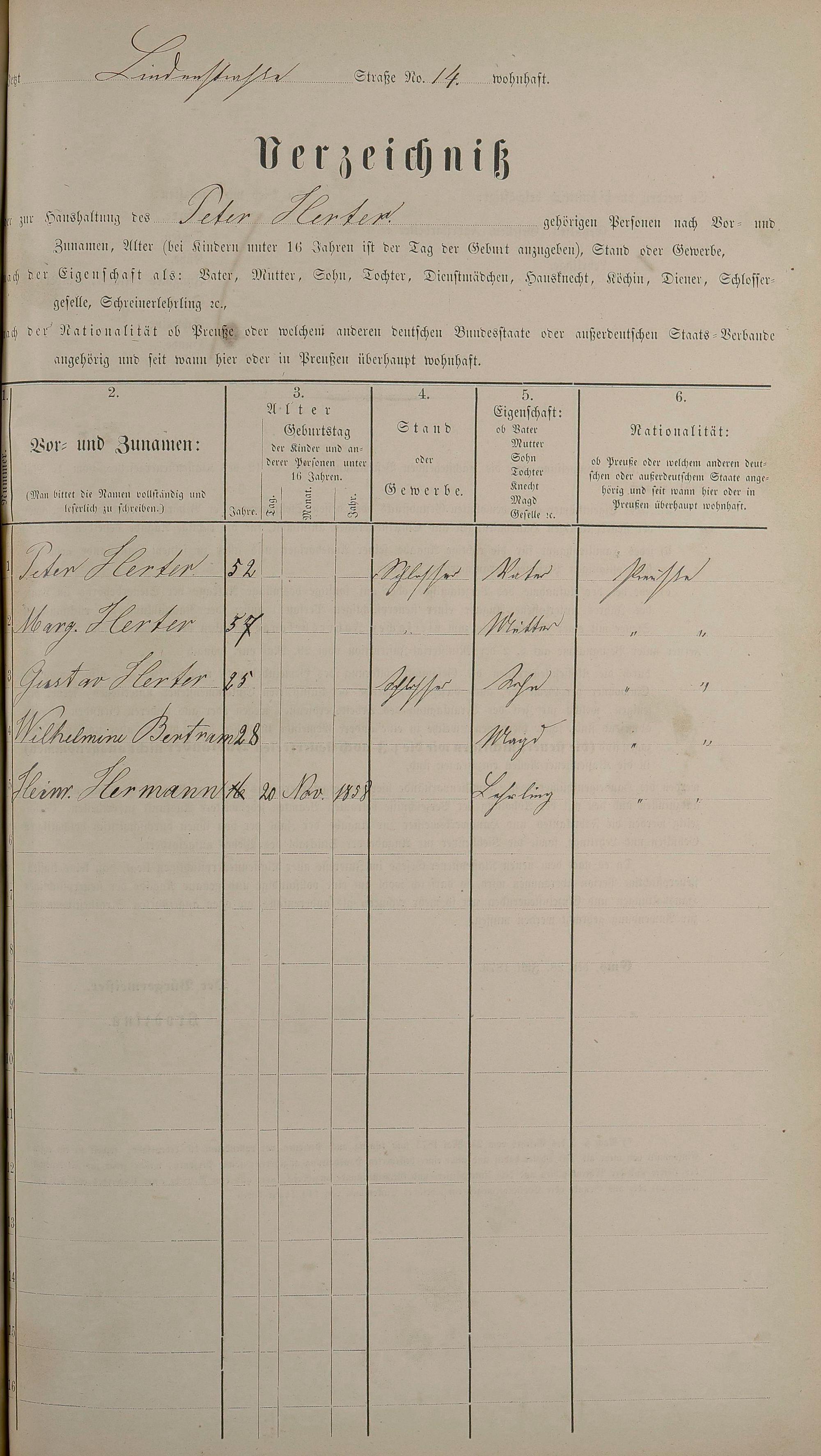Personenstandsaufnahme zur Klassensteuerrolle für 1873