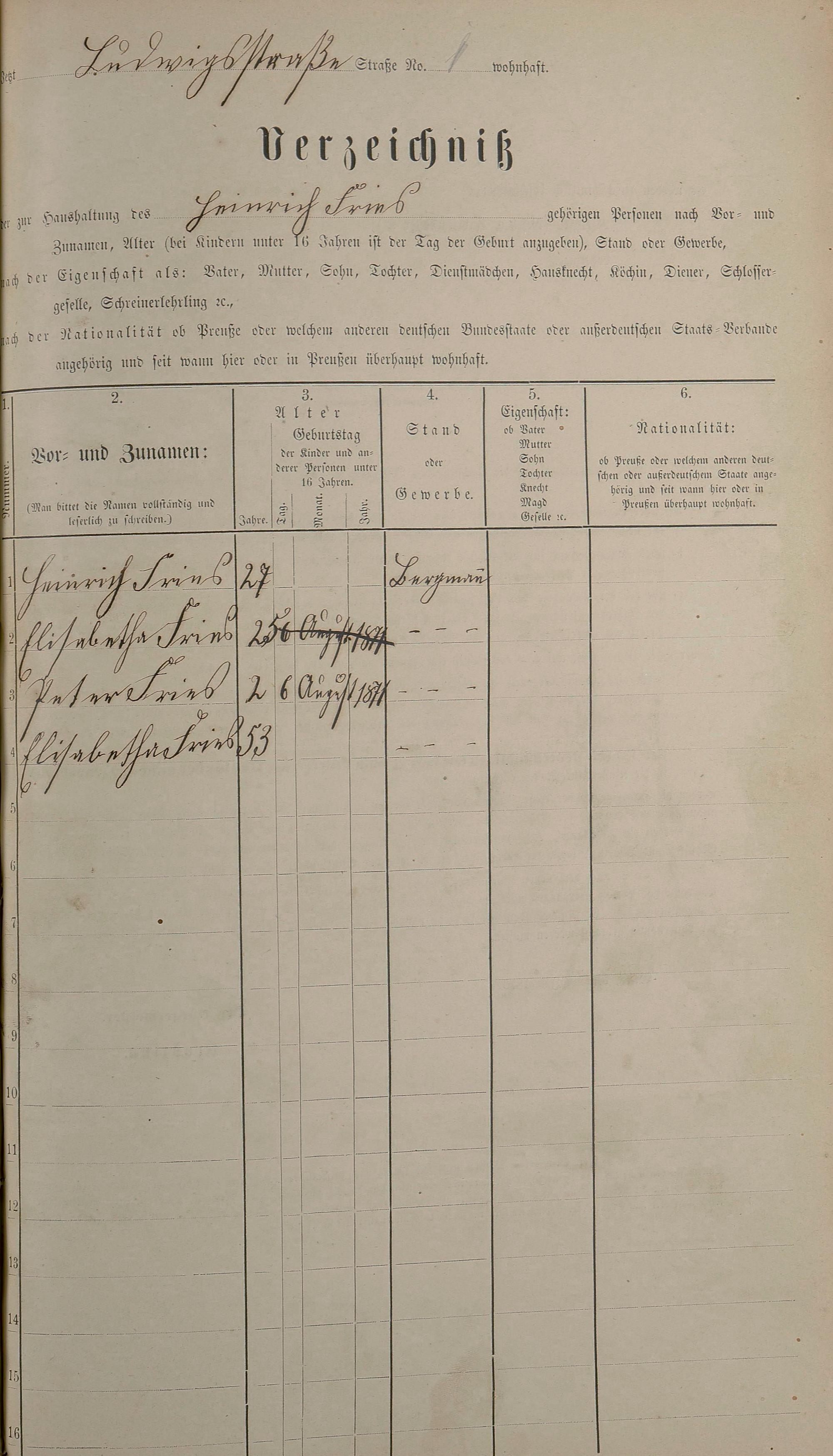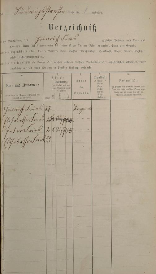Personenstandsaufnahme zur Klassensteuerrolle für 1873