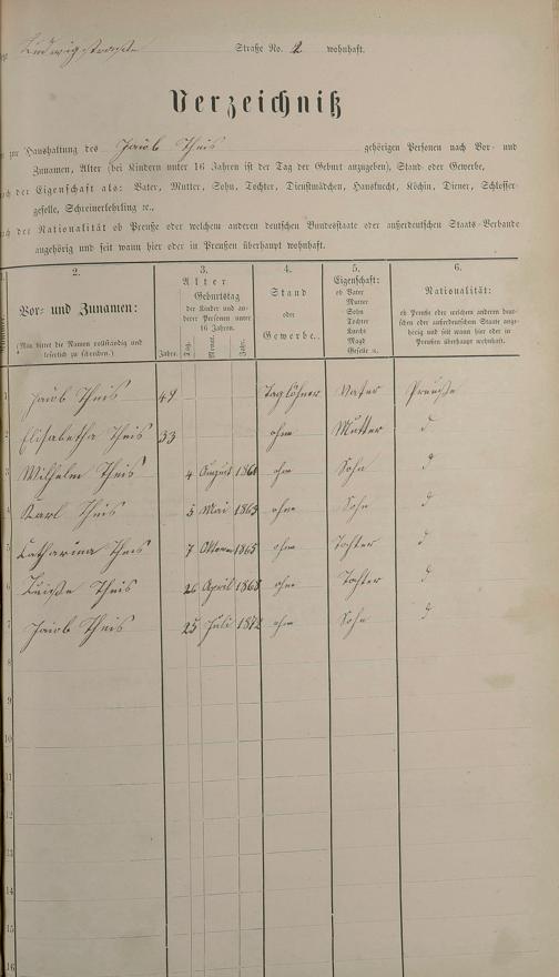 Personenstandsaufnahme zur Klassensteuerrolle für 1873