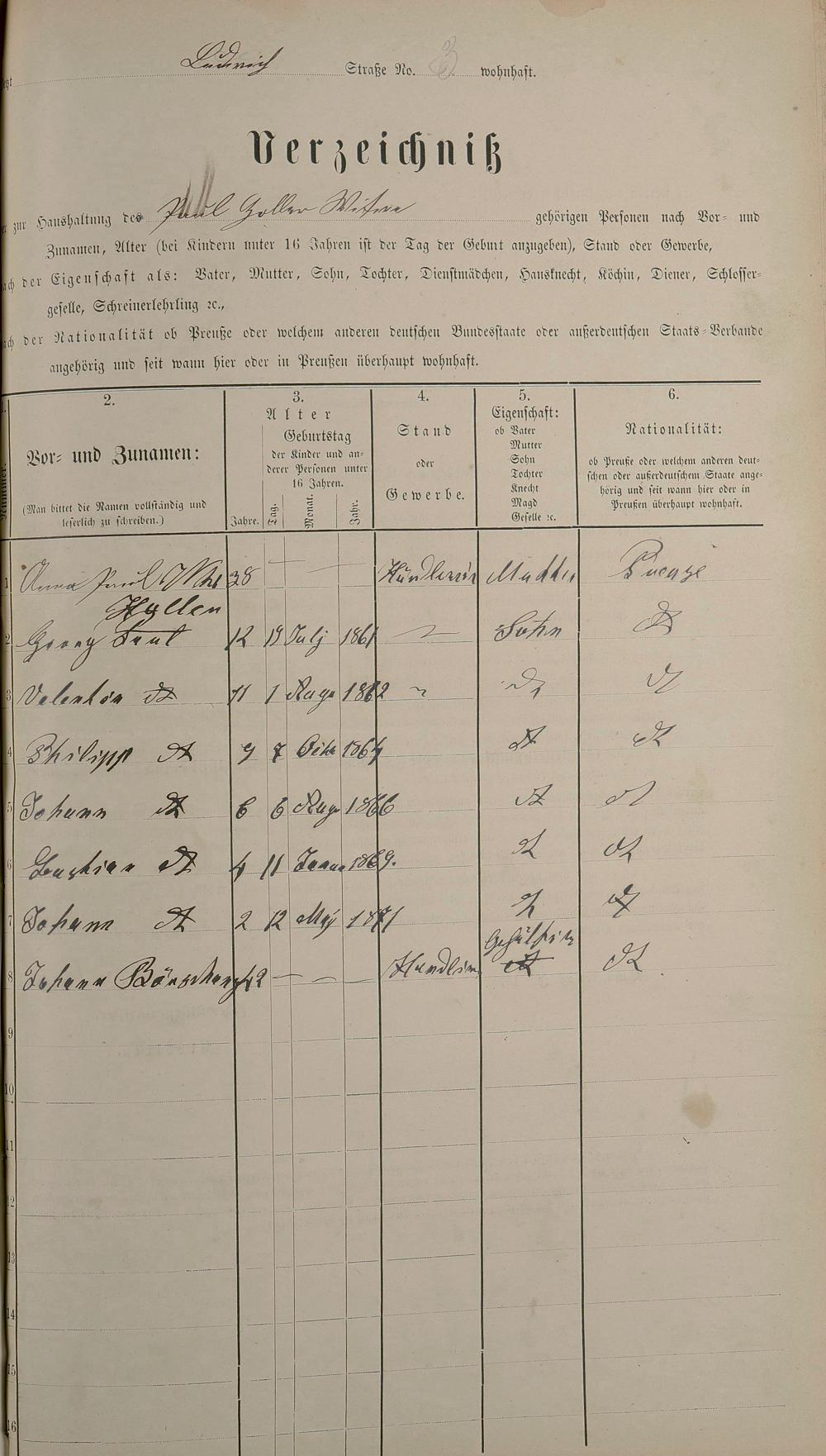 Personenstandsaufnahme zur Klassensteuerrolle für 1873
