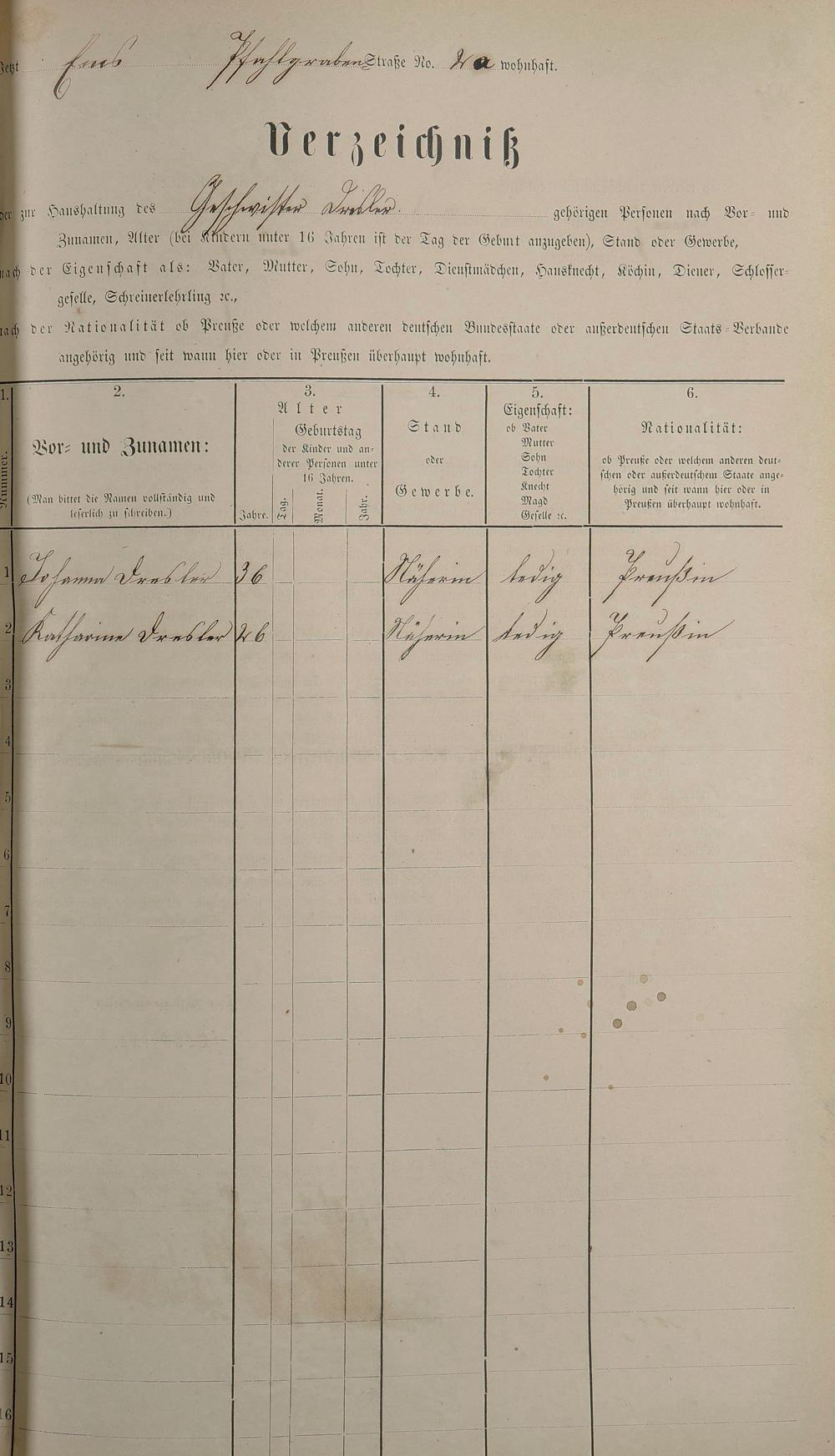 Personenstandsaufnahme zur Klassensteuerrolle für 1873
