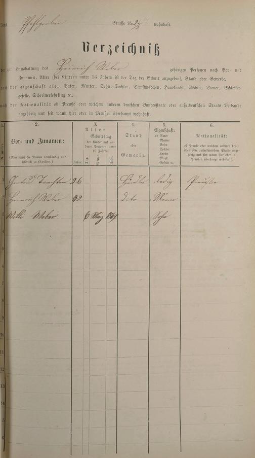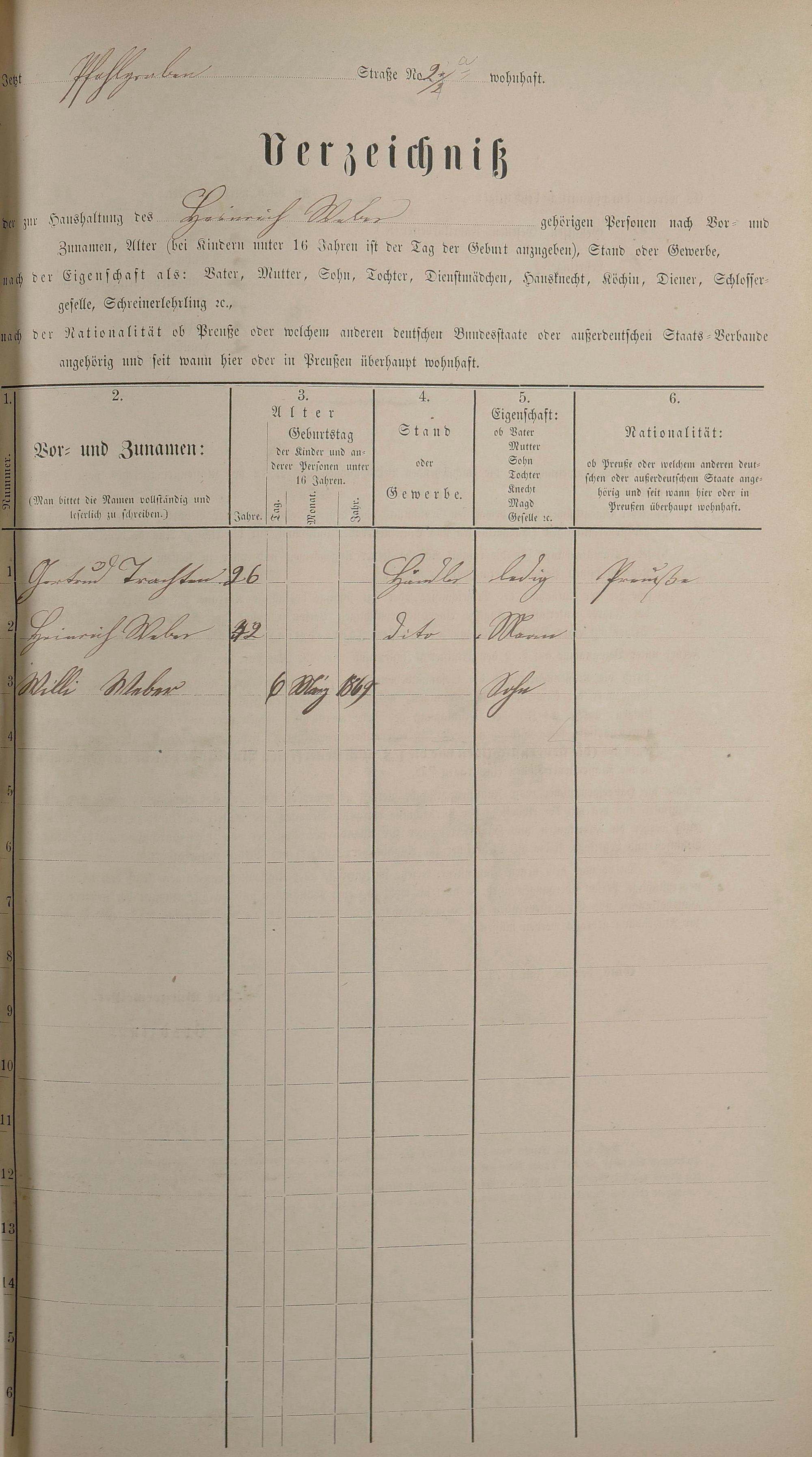 Personenstandsaufnahme zur Klassensteuerrolle für 1873