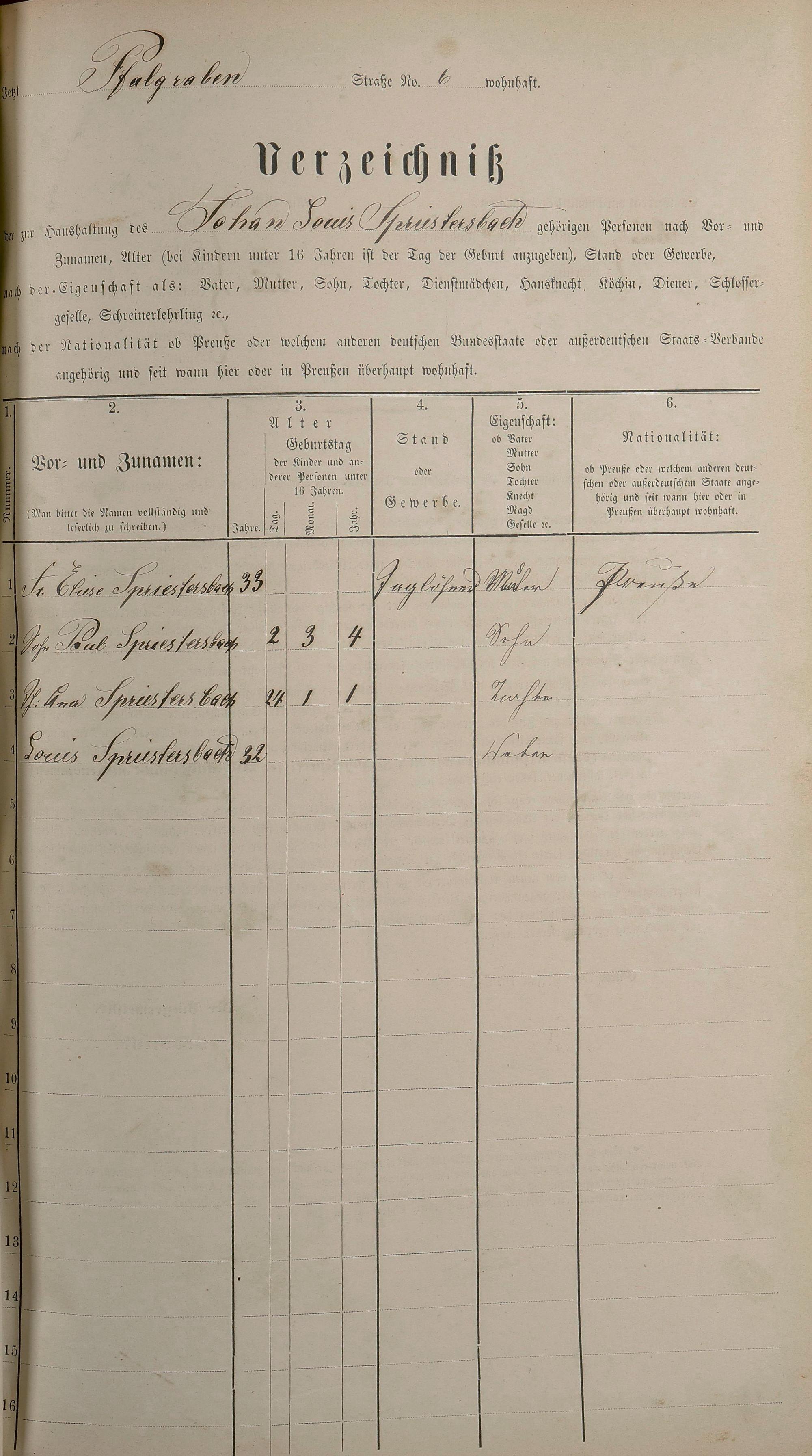 Personenstandsaufnahme zur Klassensteuerrolle für 1873