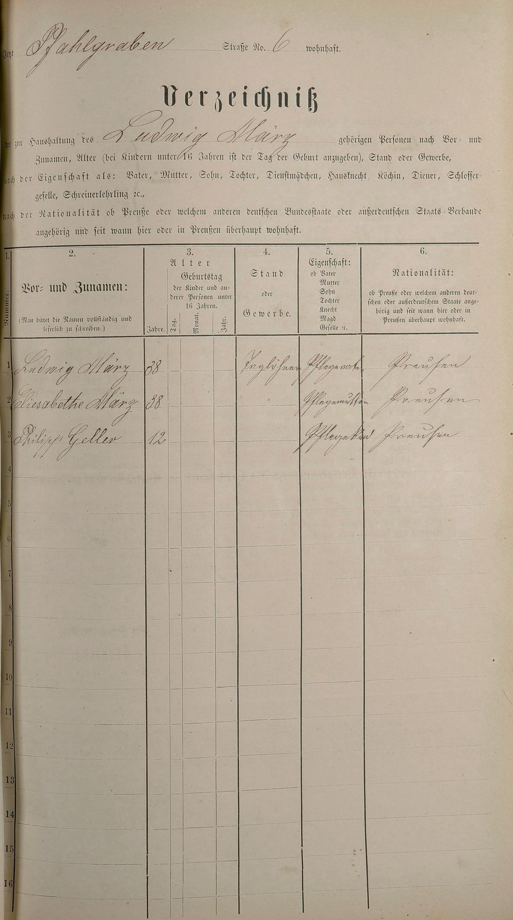 Personenstandsaufnahme zur Klassensteuerrolle für 1873