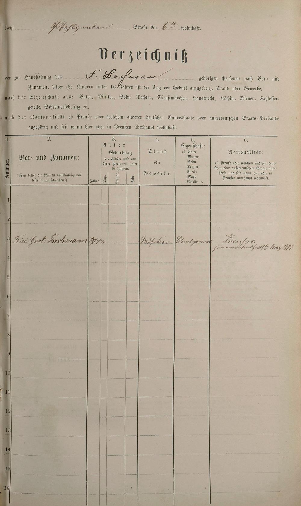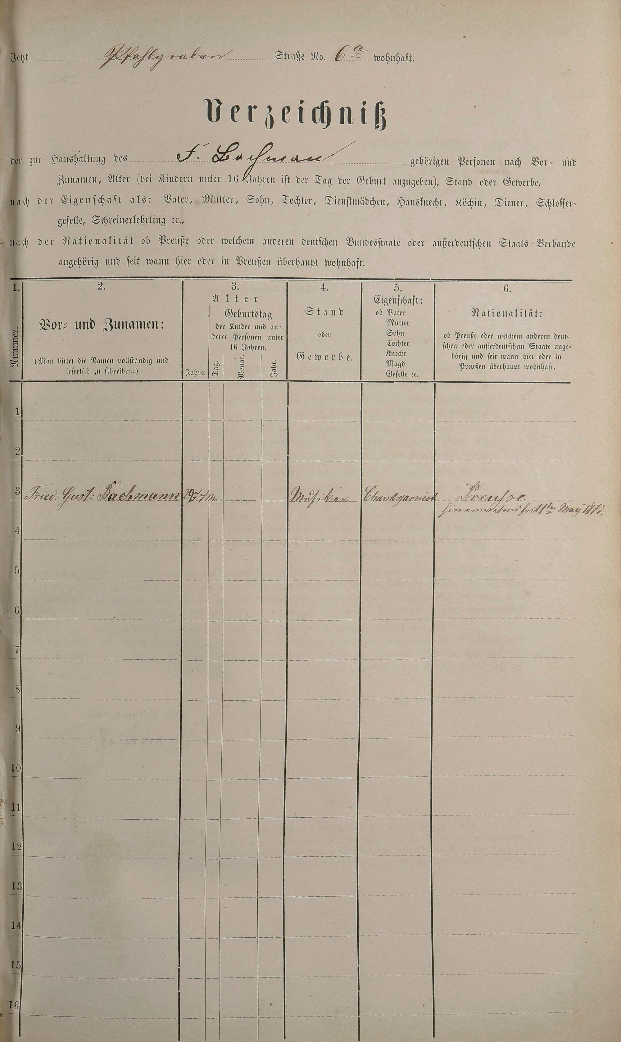 Personenstandsaufnahme zur Klassensteuerrolle für 1873