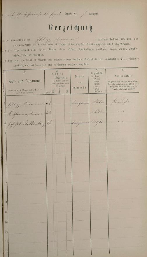 Personenstandsaufnahme zur Klassensteuerrolle für 1873