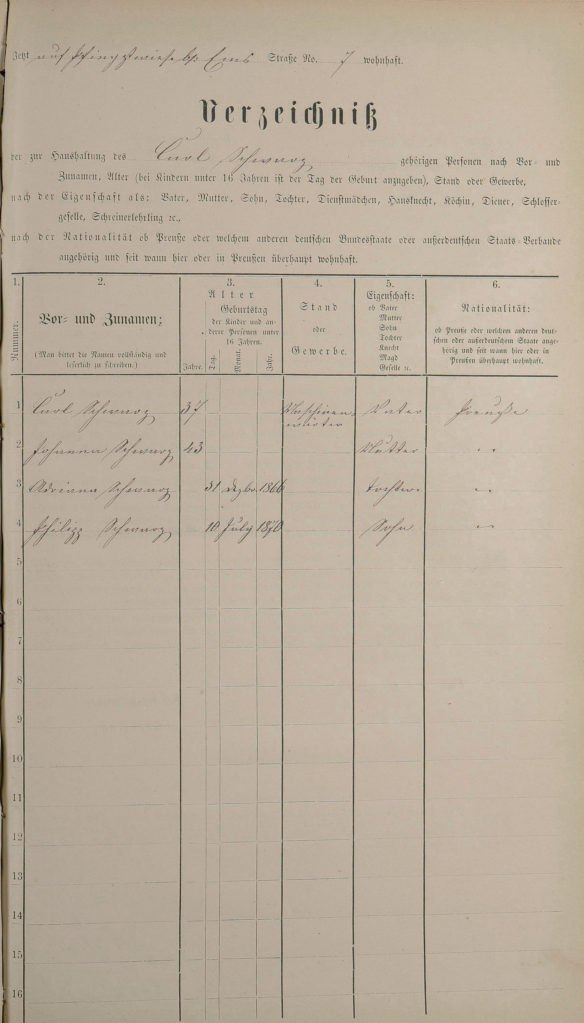 Personenstandsaufnahme zur Klassensteuerrolle für 1873