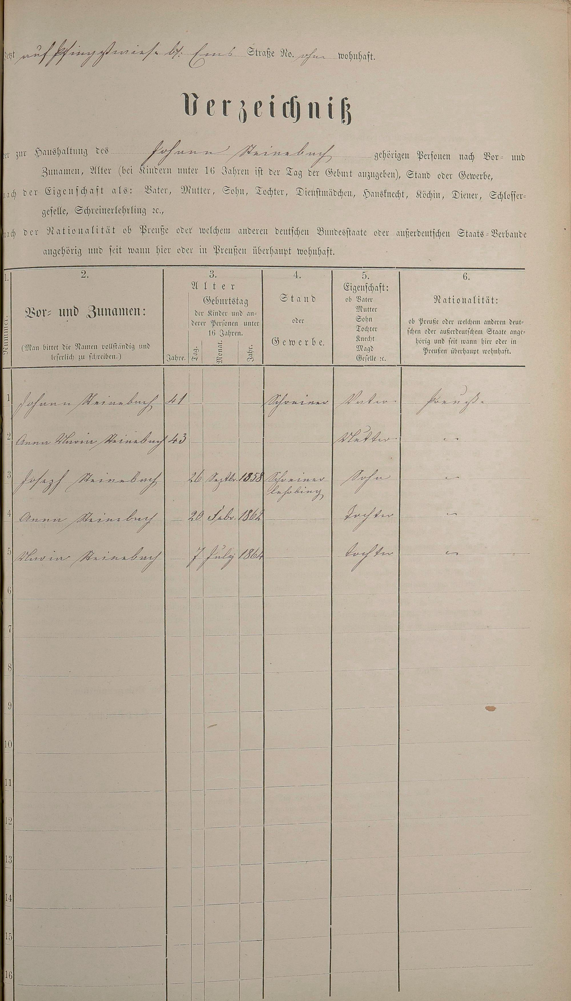 Personenstandsaufnahme zur Klassensteuerrolle für 1873