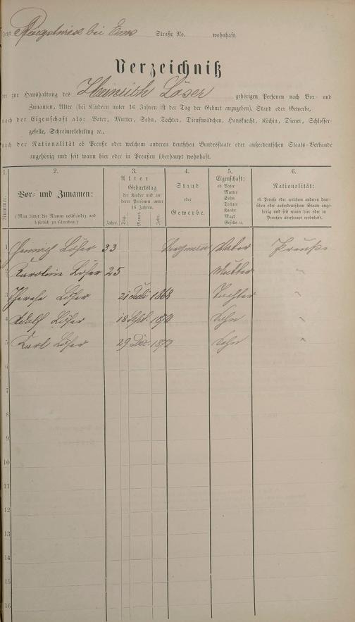 Personenstandsaufnahme zur Klassensteuerrolle für 1873