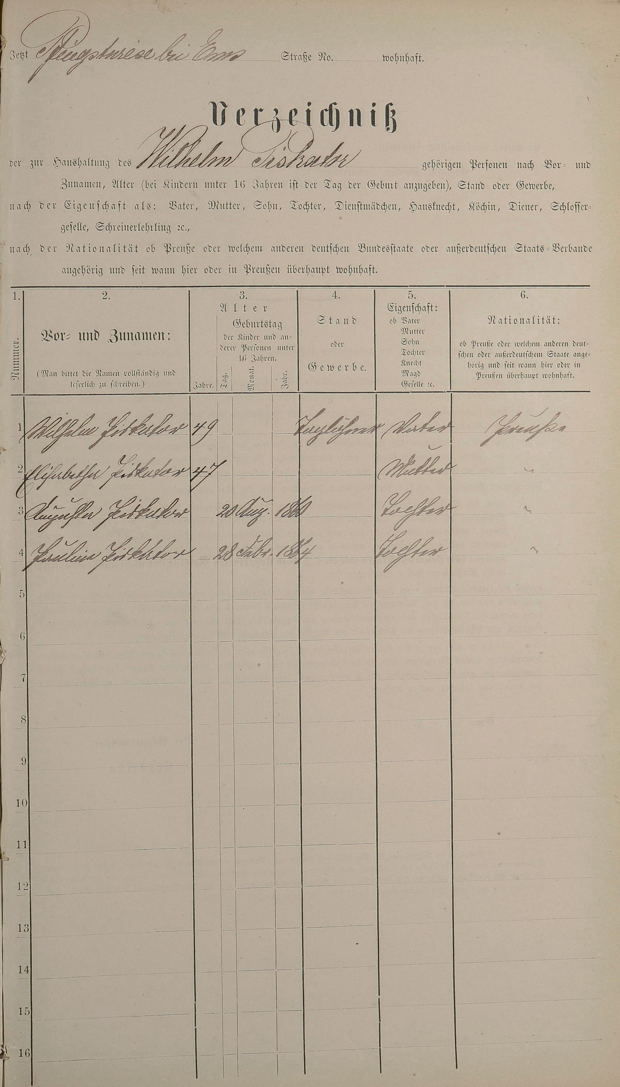 Personenstandsaufnahme zur Klassensteuerrolle für 1873