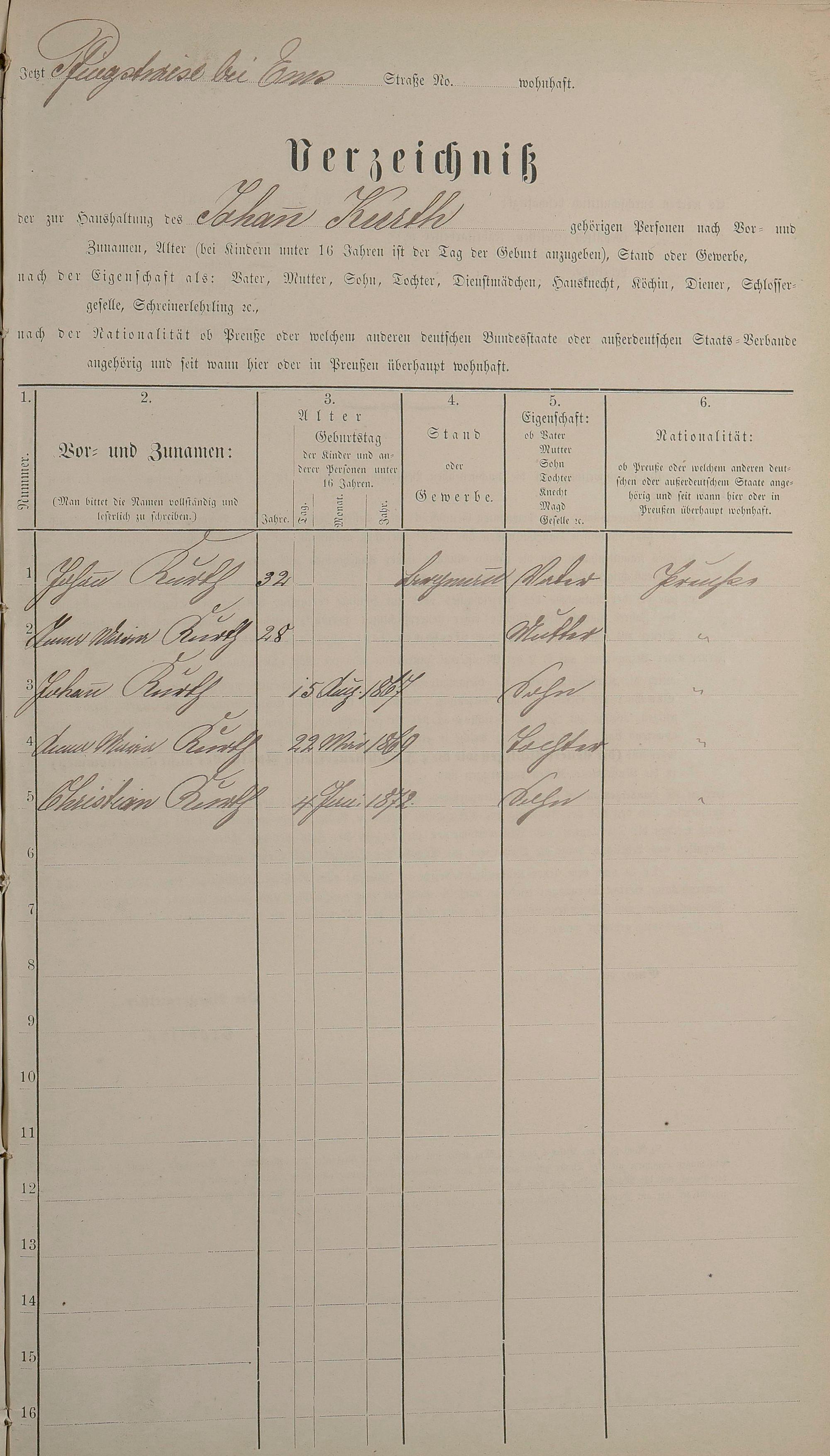 Personenstandsaufnahme zur Klassensteuerrolle für 1873