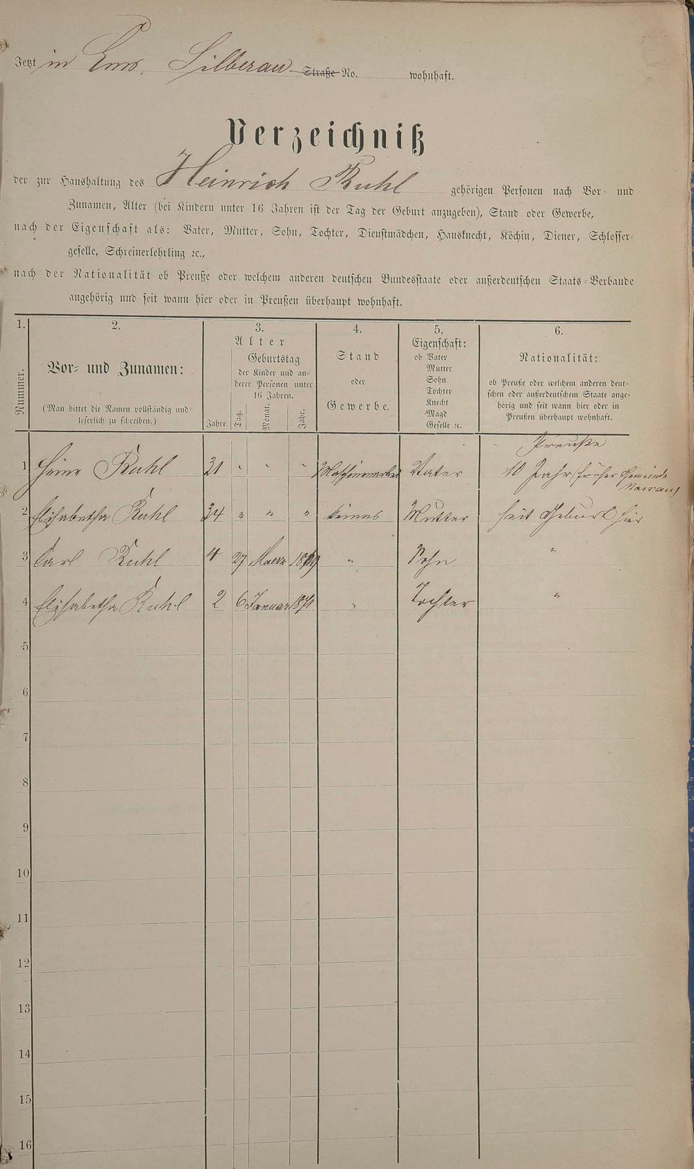 Personenstandsaufnahme zur Klassensteuerrolle für 1873