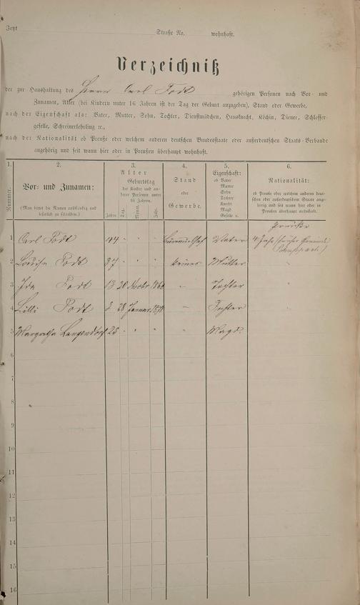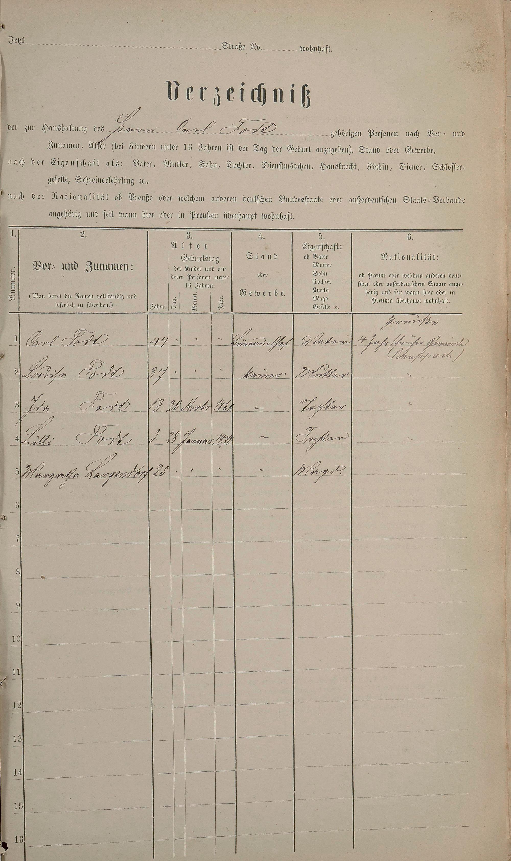 Personenstandsaufnahme zur Klassensteuerrolle für 1873