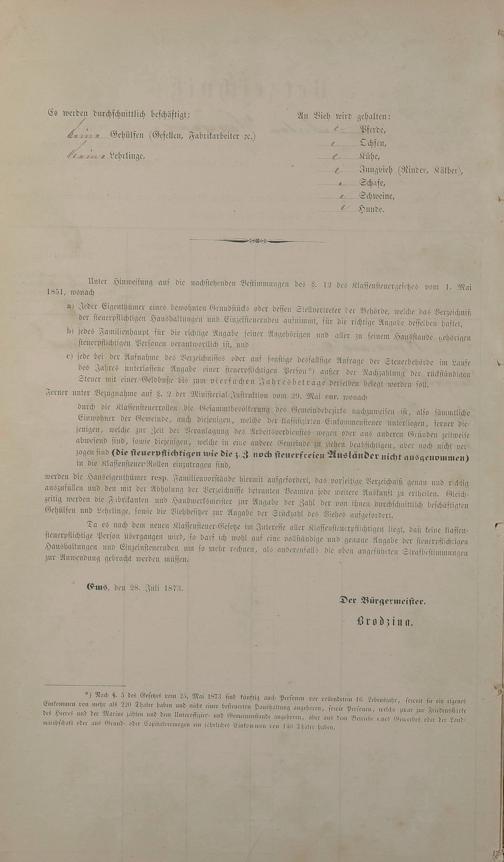 Personenstandsaufnahme zur Klassensteuerrolle für 1873