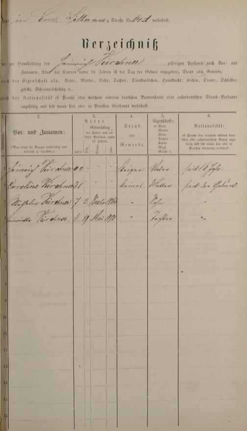 Personenstandsaufnahme zur Klassensteuerrolle für 1873