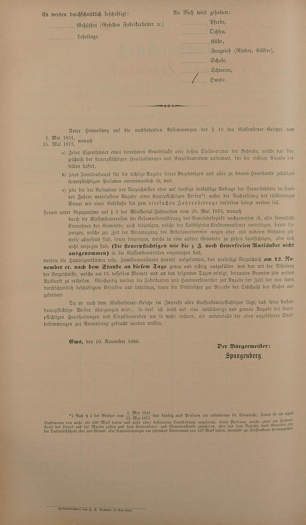 Personenstandsaufnahme zur Klassensteuerrolle für 1880