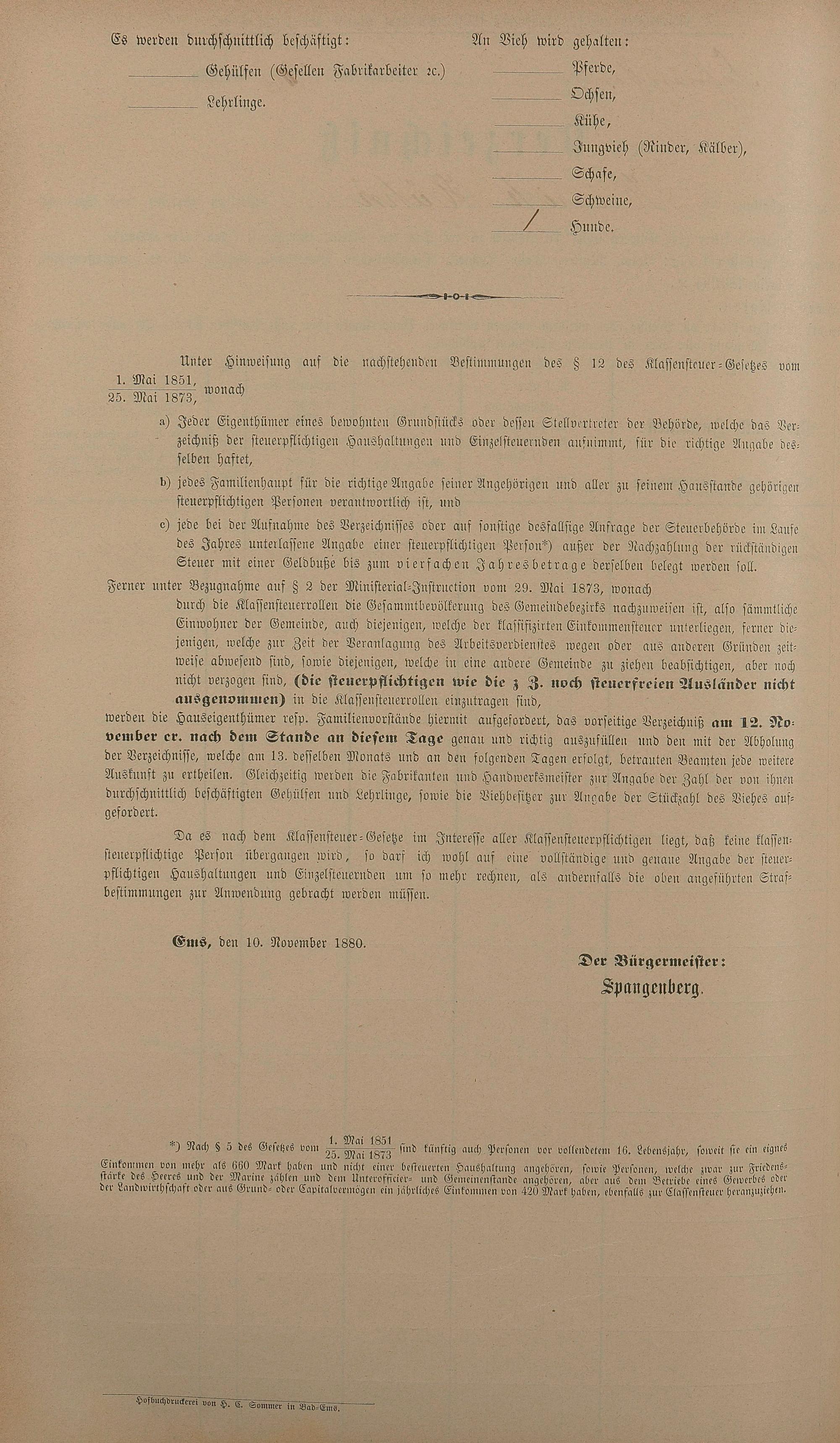 Personenstandsaufnahme zur Klassensteuerrolle für 1880