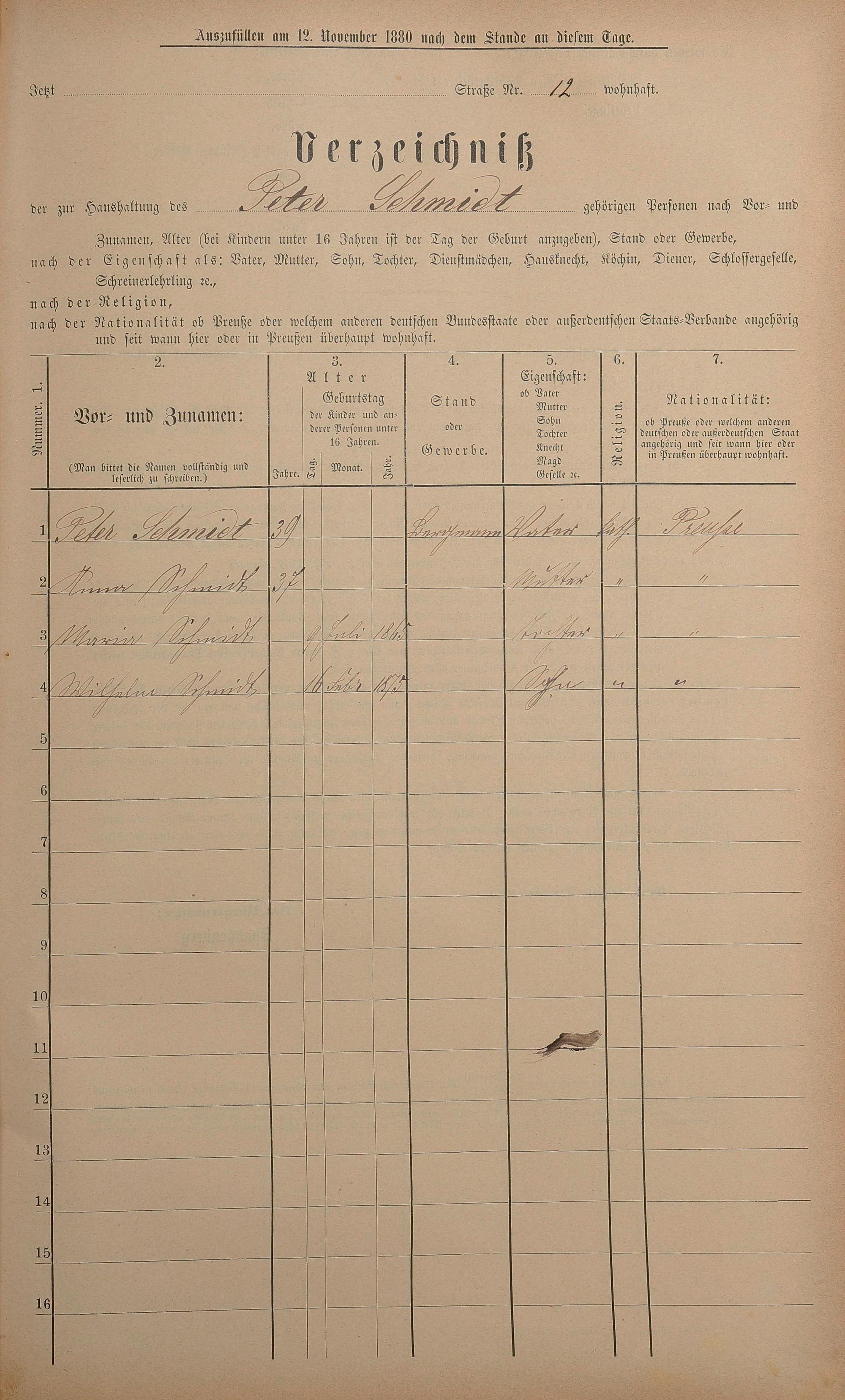 Personenstandsaufnahme zur Klassensteuerrolle für 1880