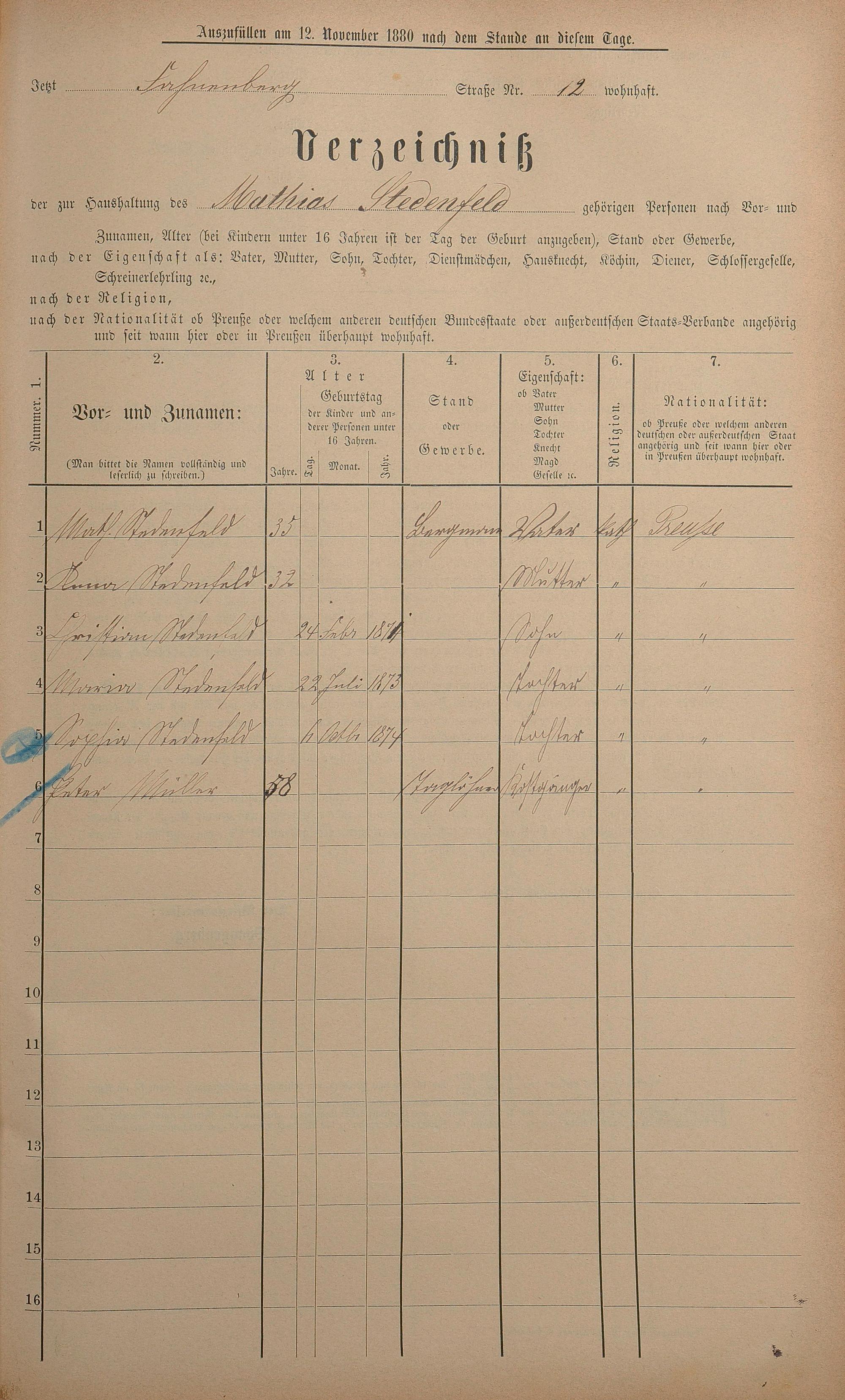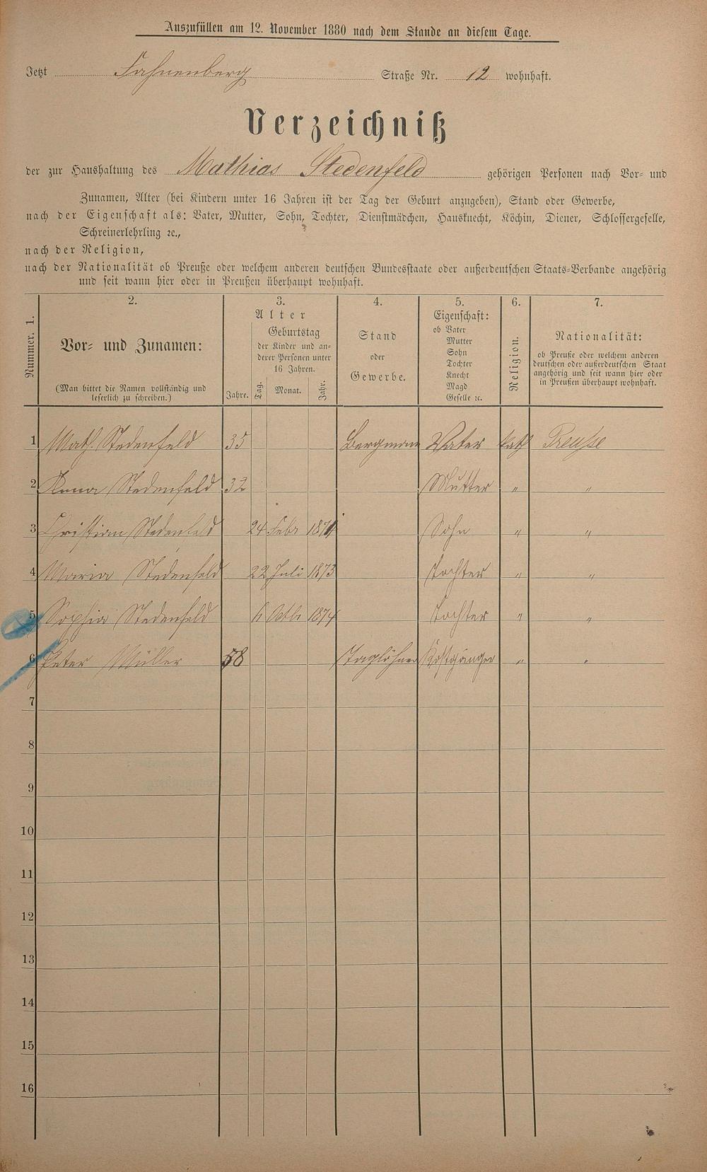 Personenstandsaufnahme zur Klassensteuerrolle für 1880