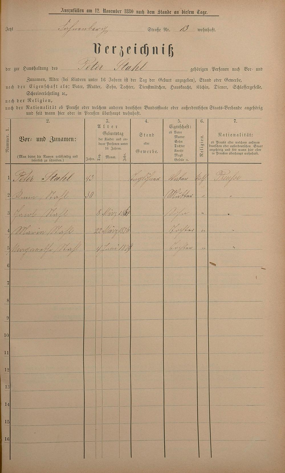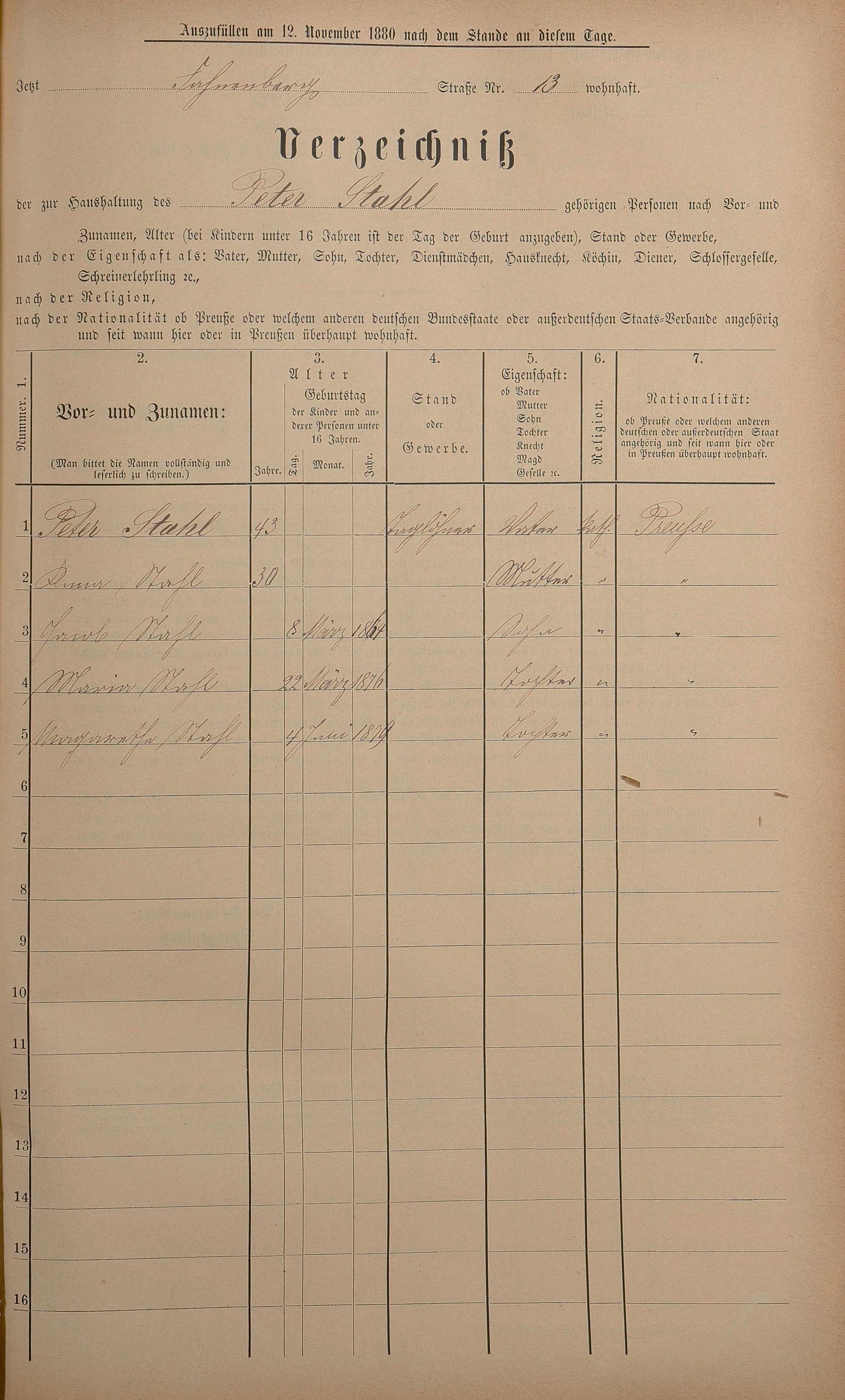 Personenstandsaufnahme zur Klassensteuerrolle für 1880
