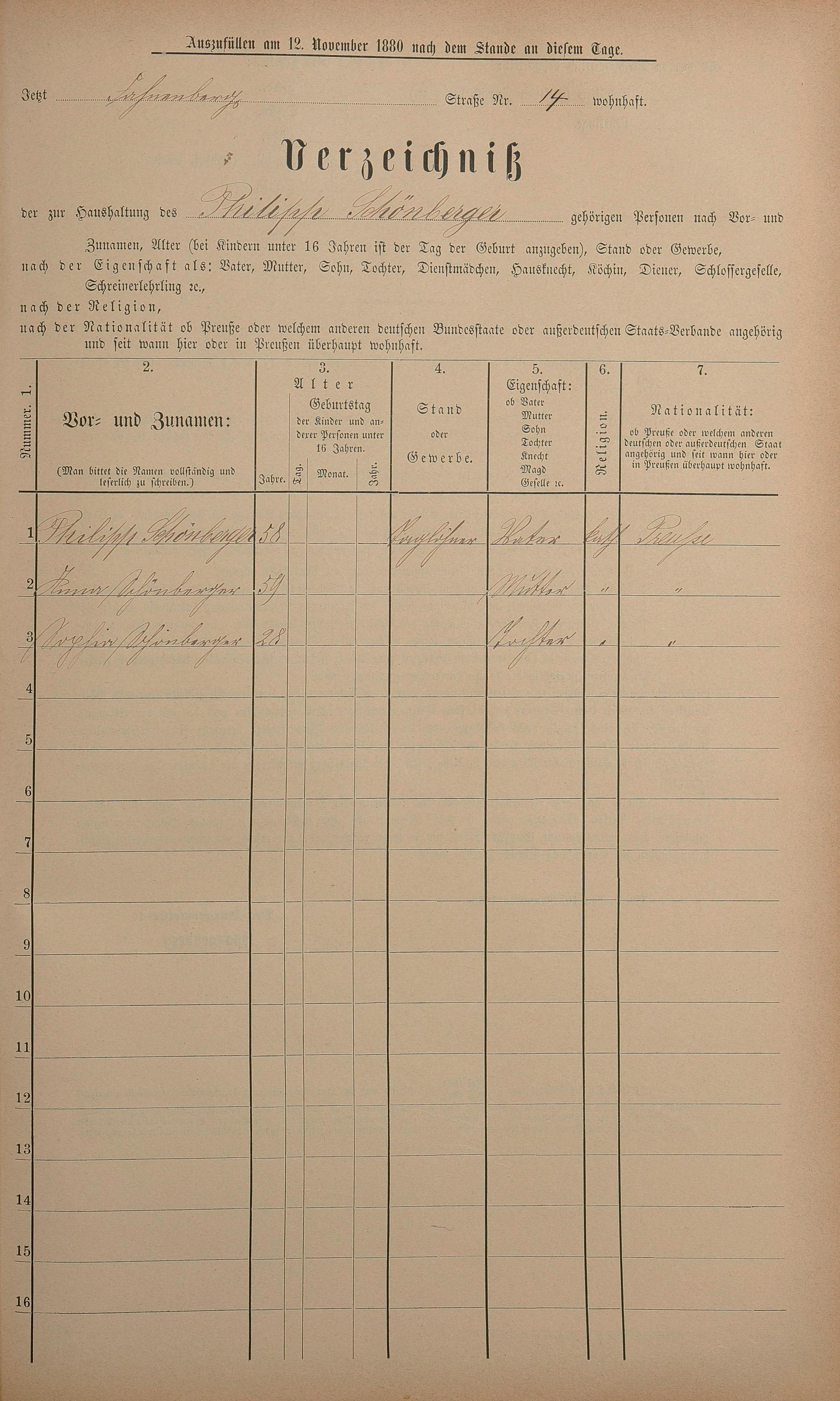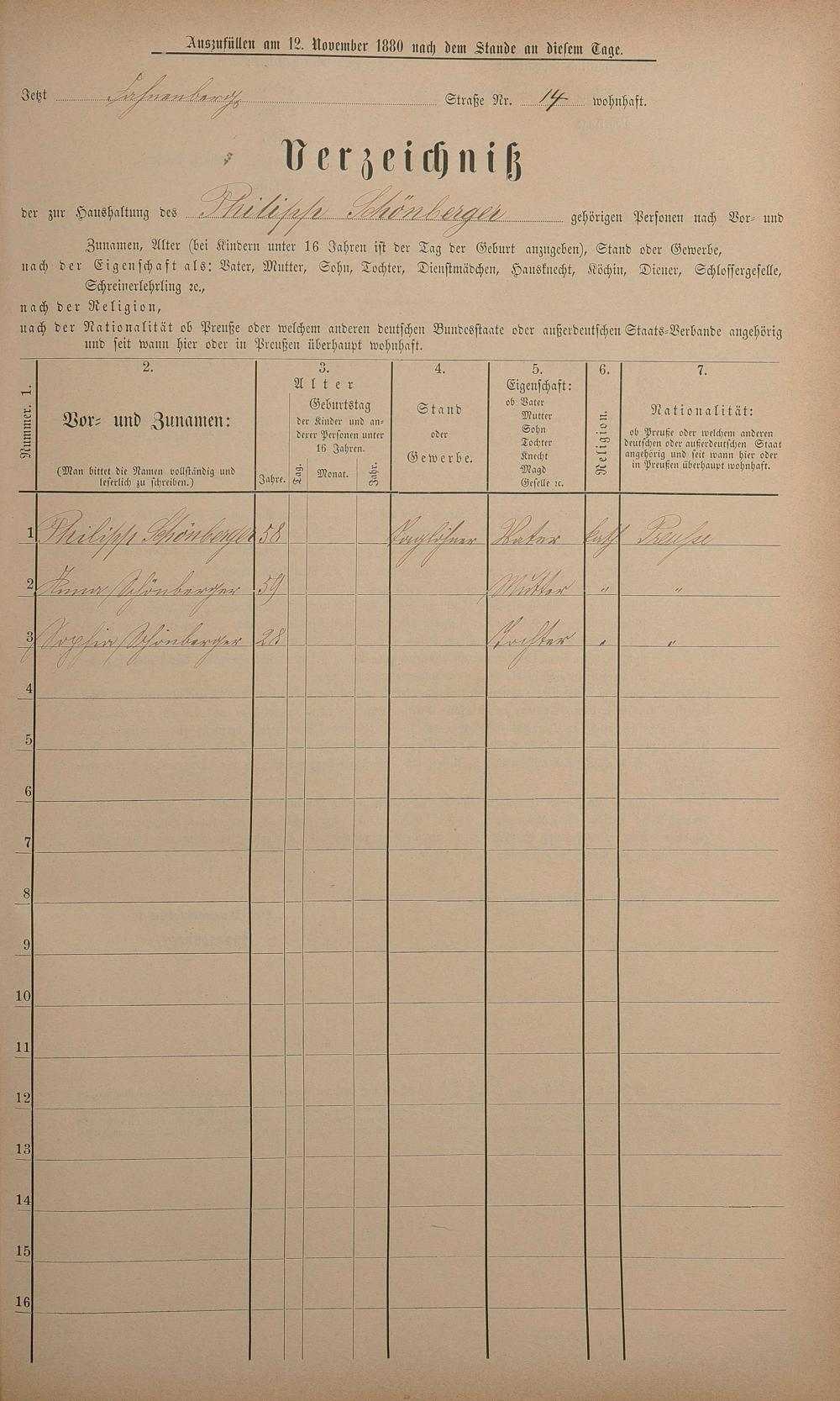 Personenstandsaufnahme zur Klassensteuerrolle für 1880
