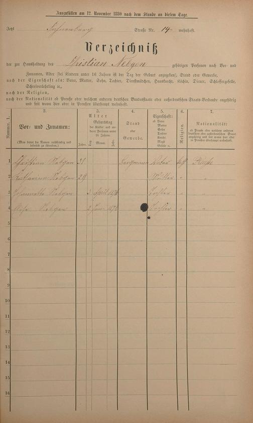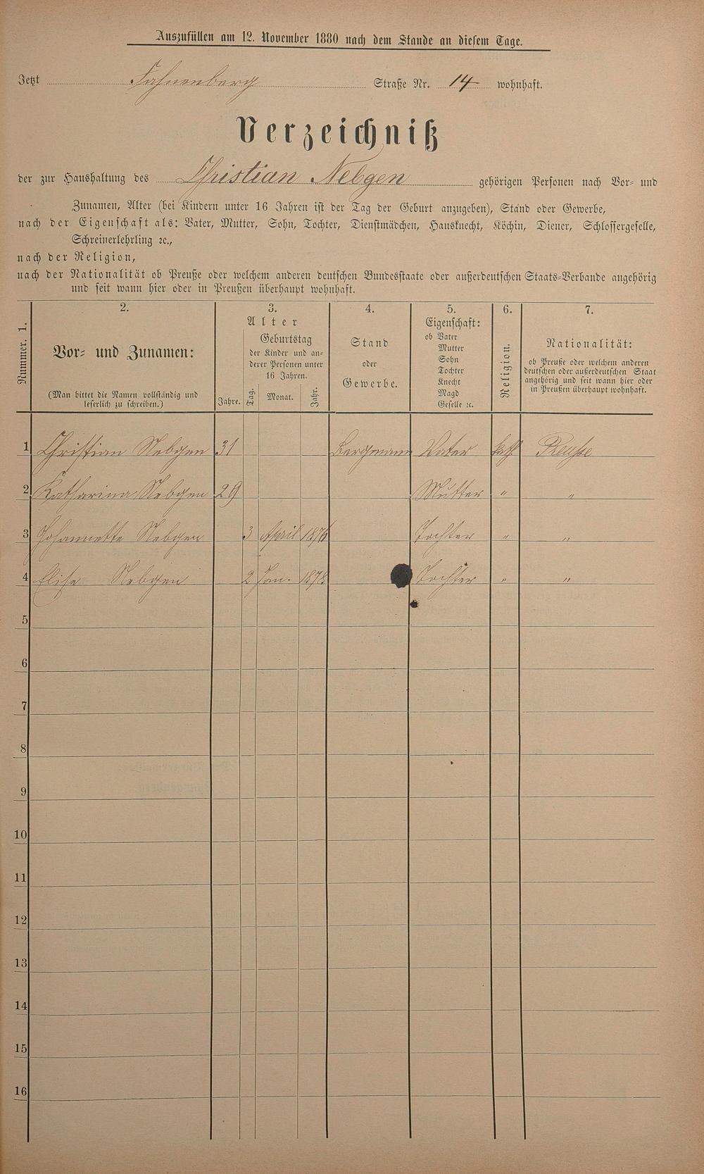 Personenstandsaufnahme zur Klassensteuerrolle für 1880