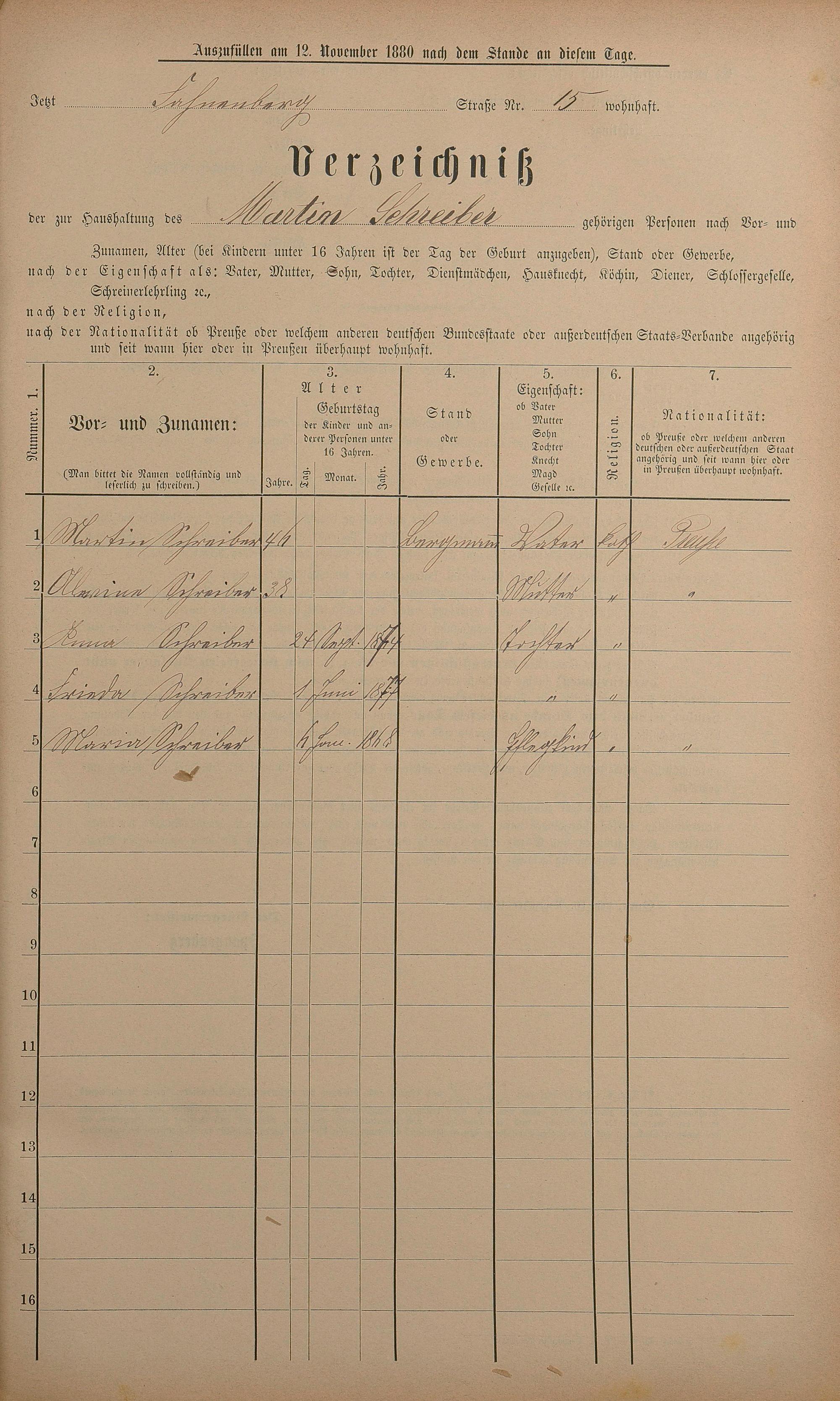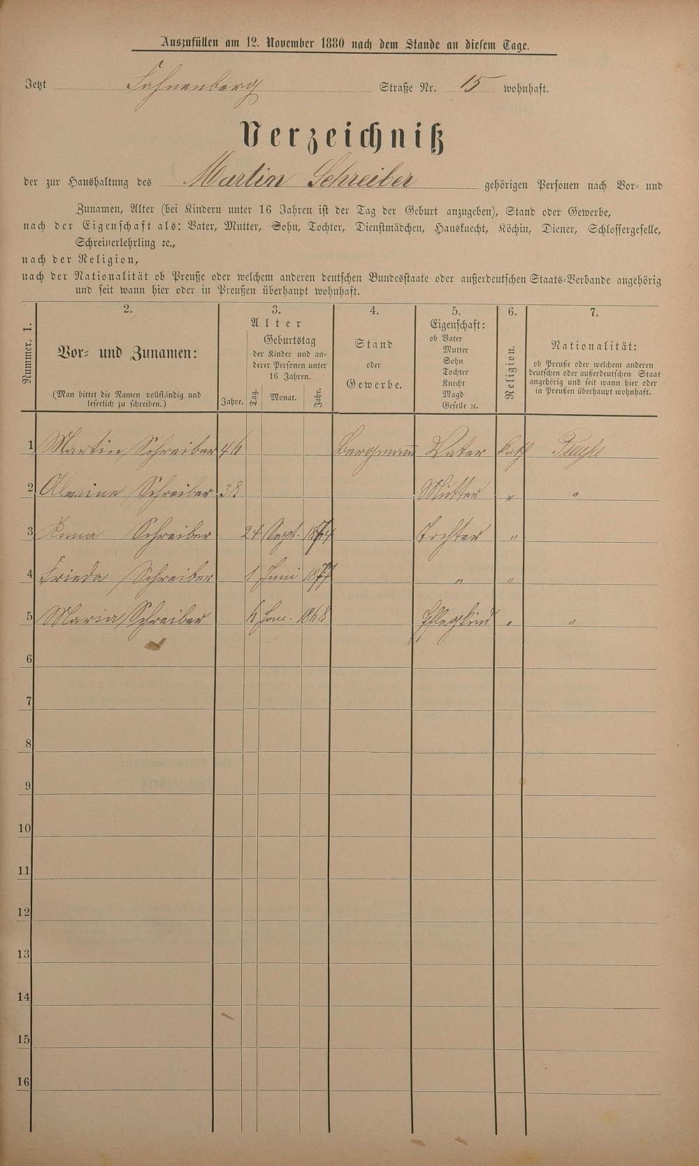 Personenstandsaufnahme zur Klassensteuerrolle für 1880