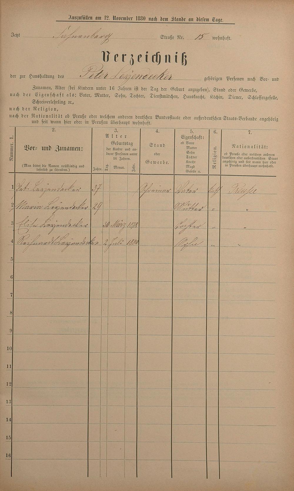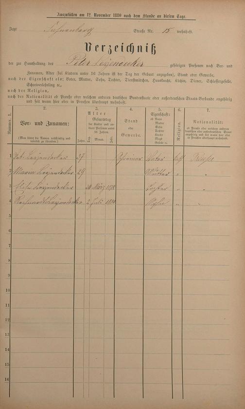 Personenstandsaufnahme zur Klassensteuerrolle für 1880