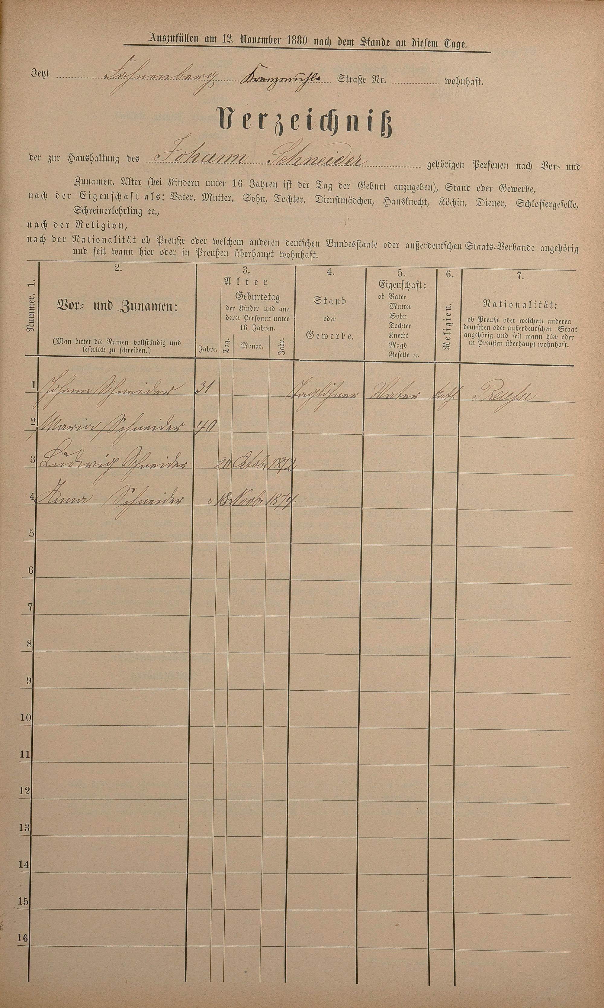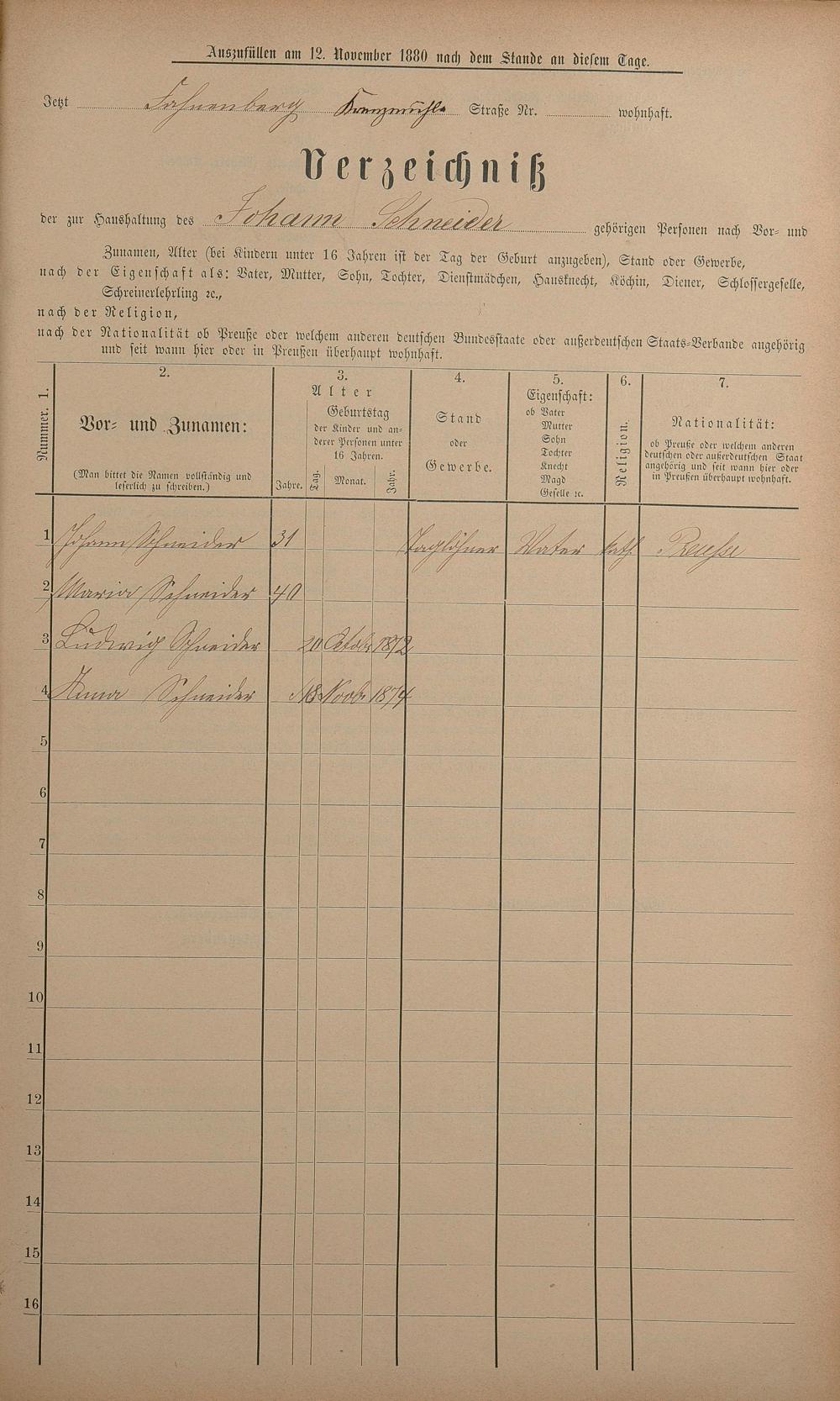 Personenstandsaufnahme zur Klassensteuerrolle für 1880