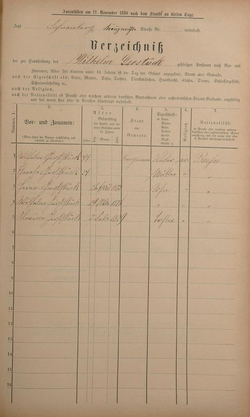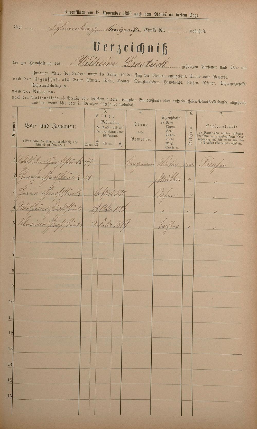Personenstandsaufnahme zur Klassensteuerrolle für 1880