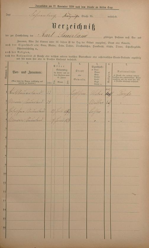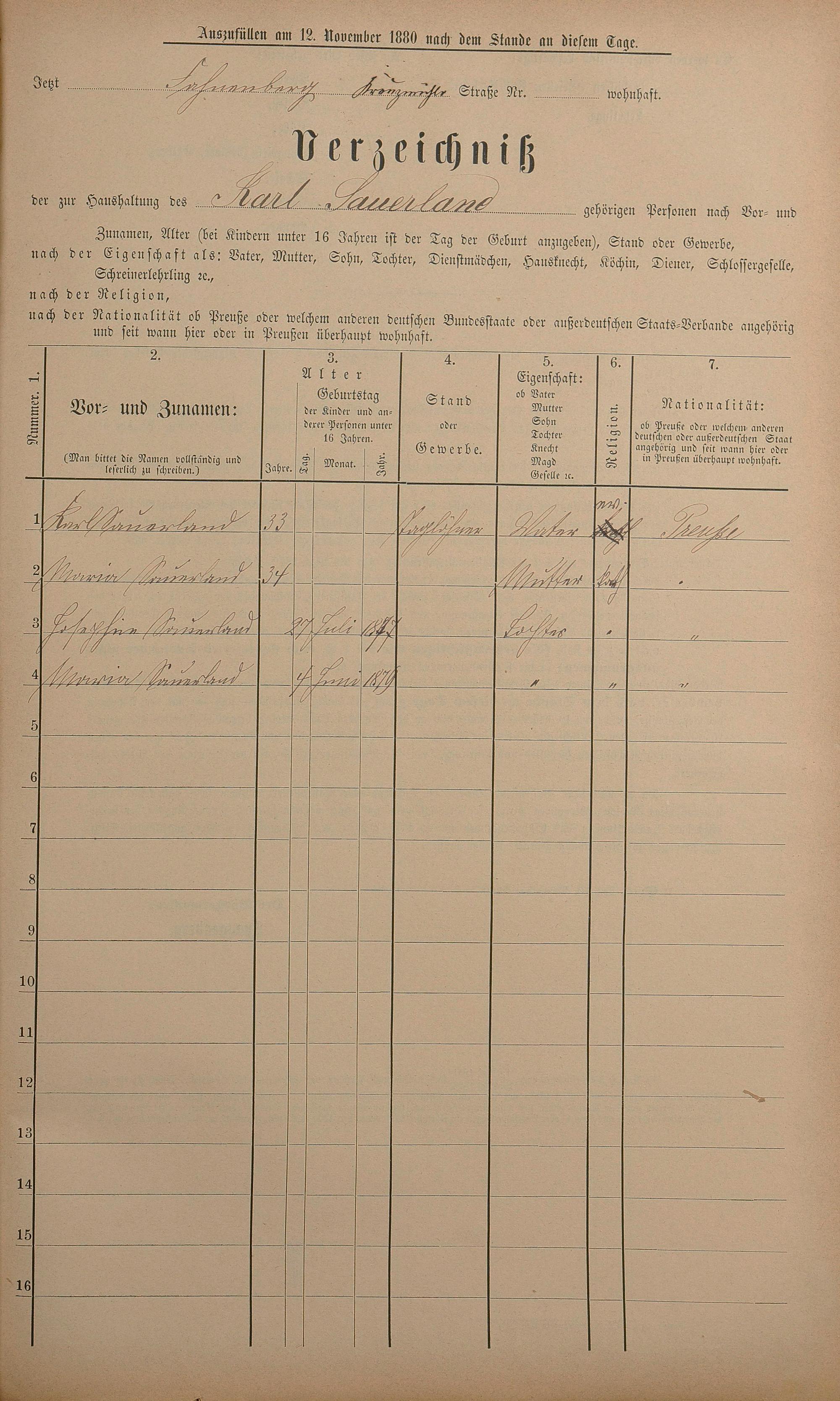 Personenstandsaufnahme zur Klassensteuerrolle für 1880