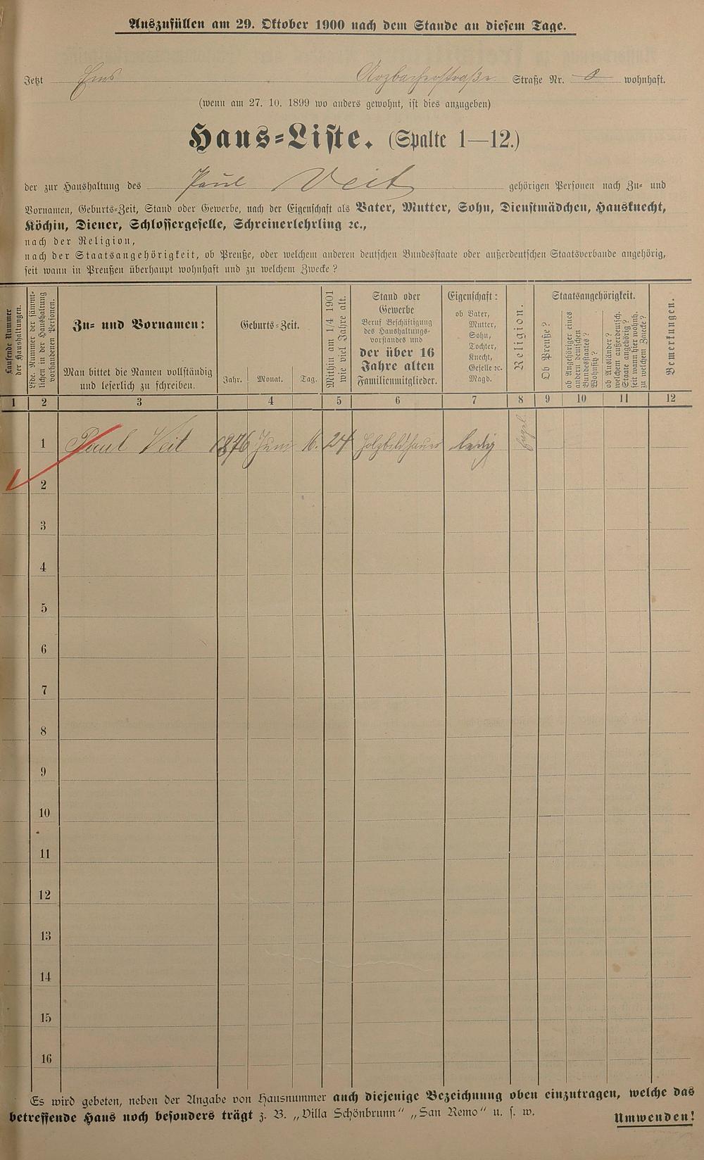 Personenstandsaufnahme zur Klassensteuerrolle für 1901
