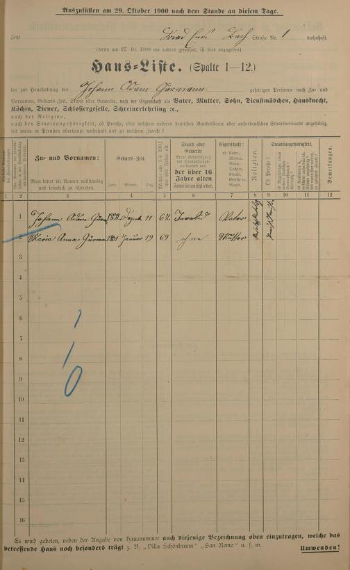 Personenstandsaufnahme zur Klassensteuerrolle für 1901