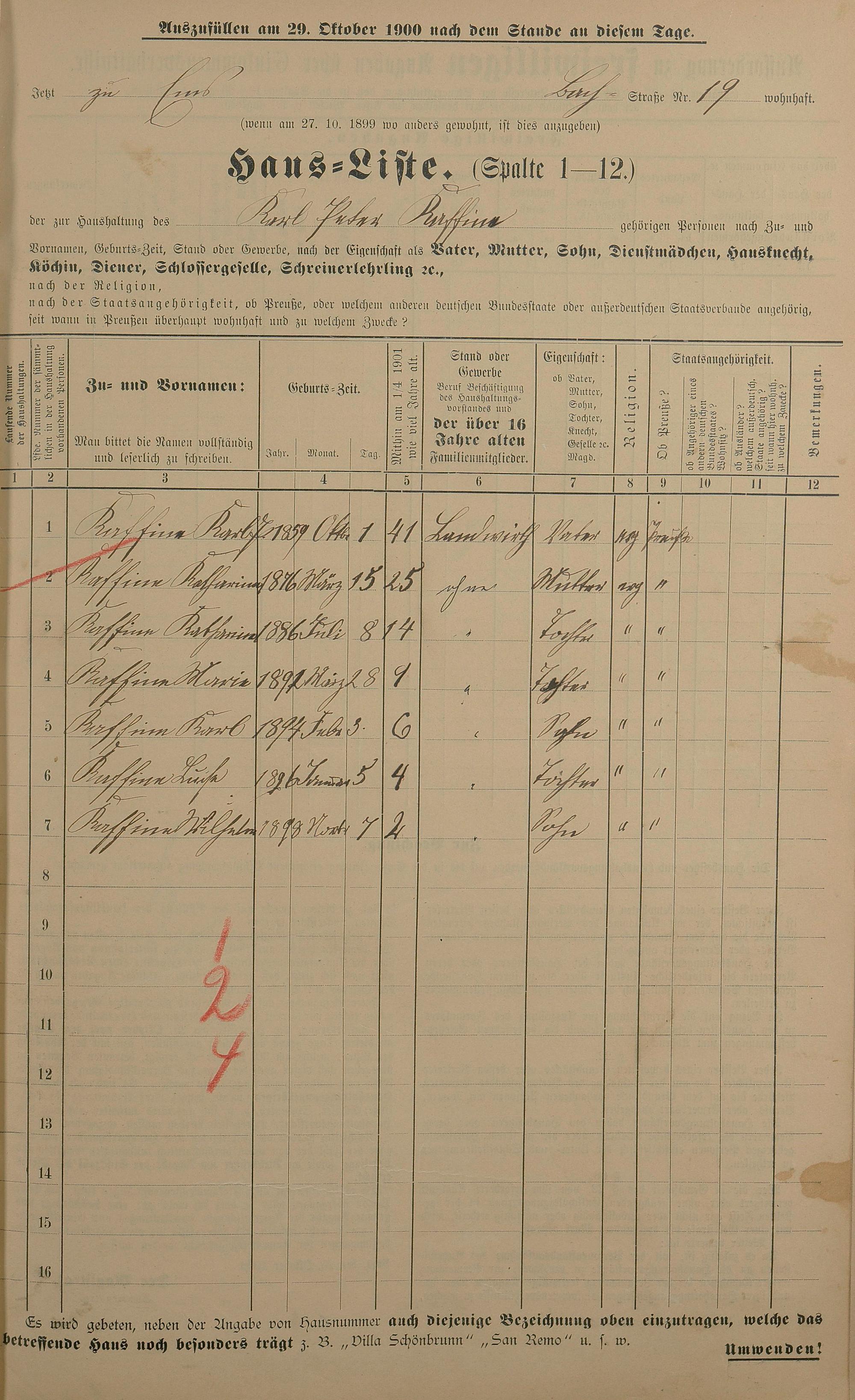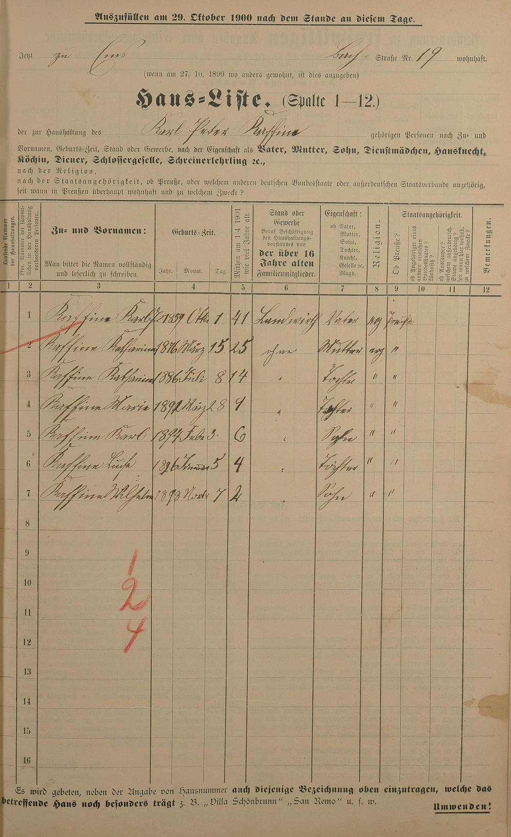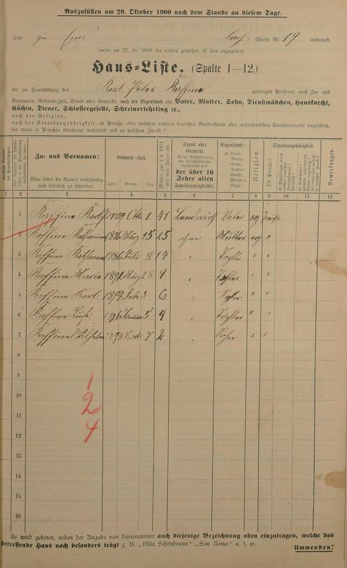 Personenstandsaufnahme zur Klassensteuerrolle für 1901