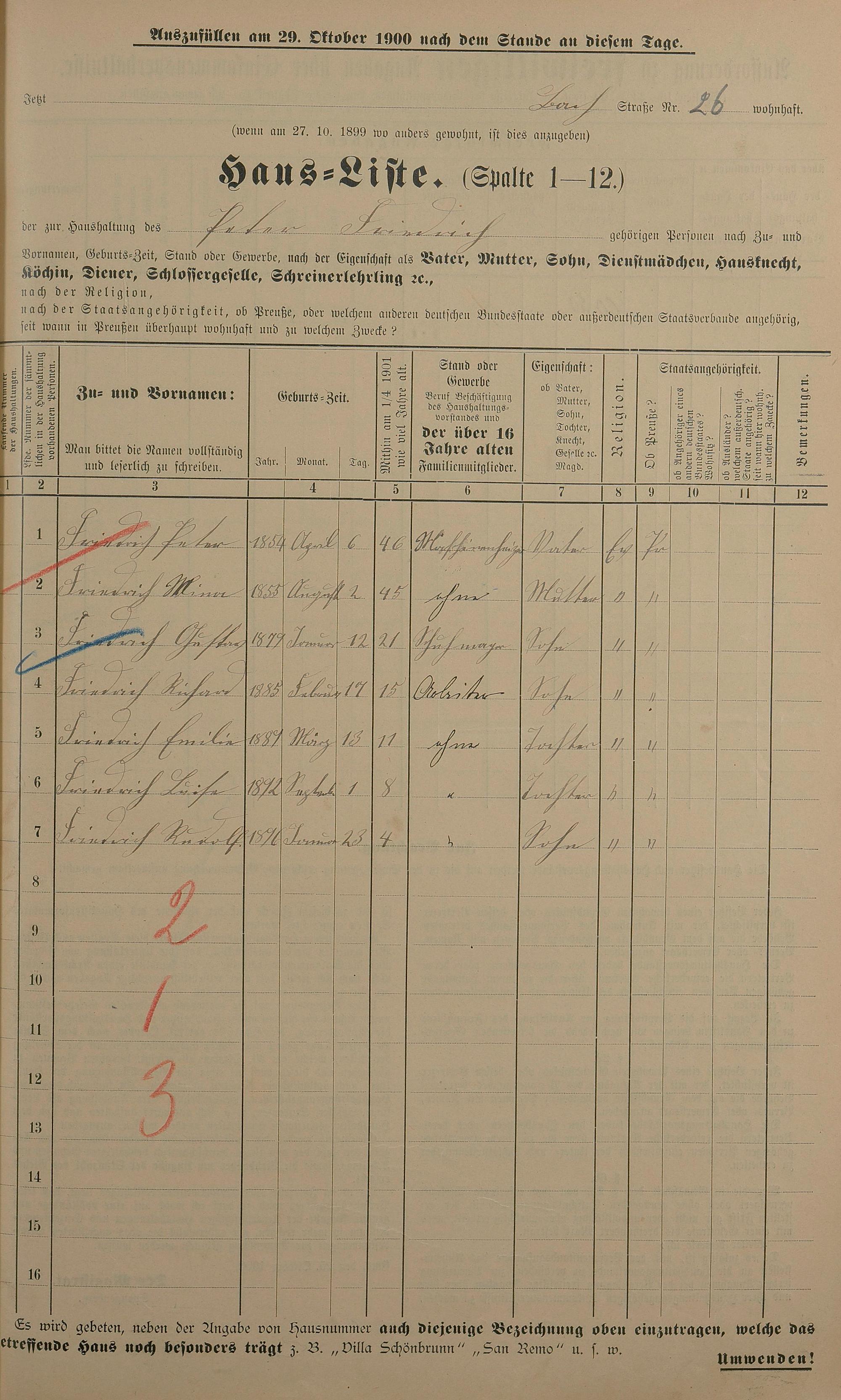 Personenstandsaufnahme zur Klassensteuerrolle für 1901