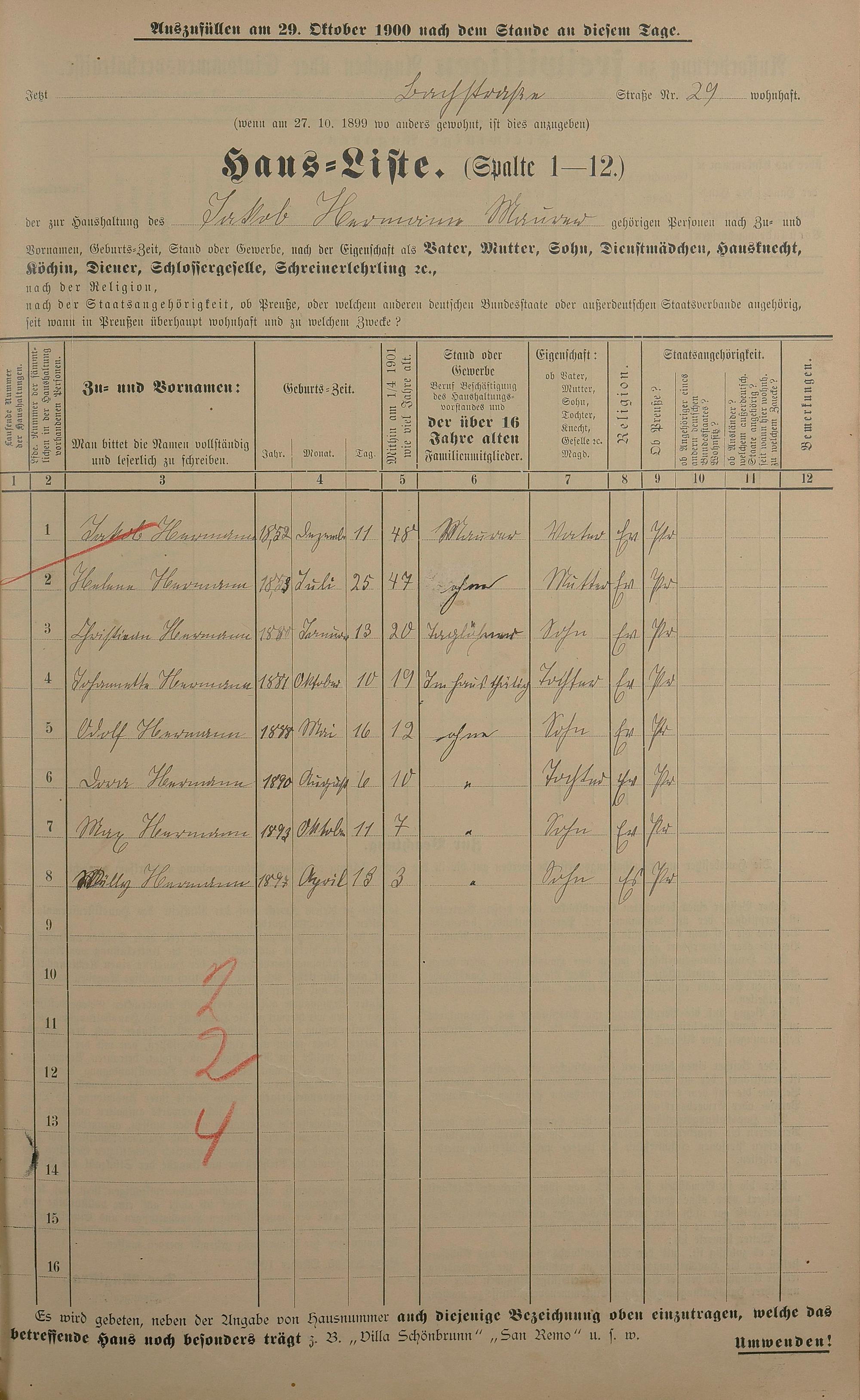 Personenstandsaufnahme zur Klassensteuerrolle für 1901