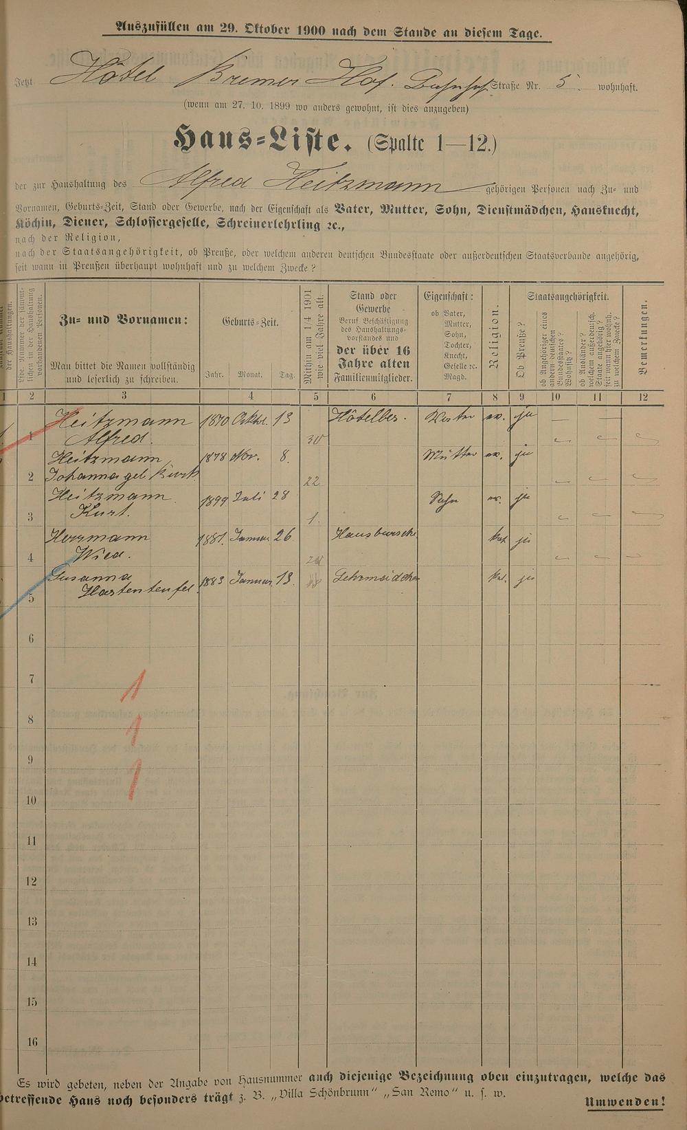 Personenstandsaufnahme zur Klassensteuerrolle für 1901