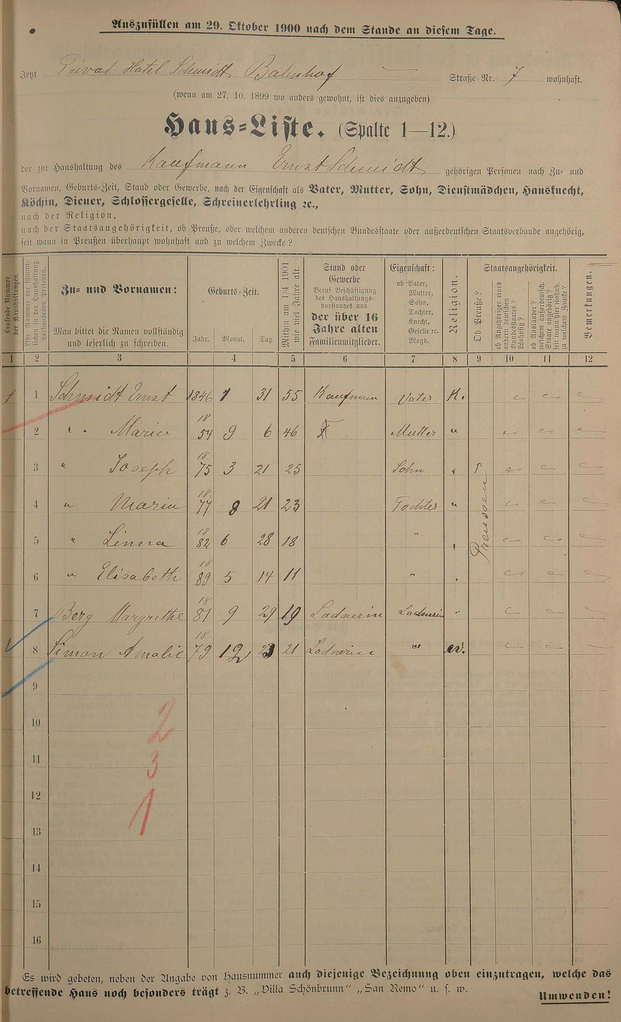 Personenstandsaufnahme zur Klassensteuerrolle für 1901