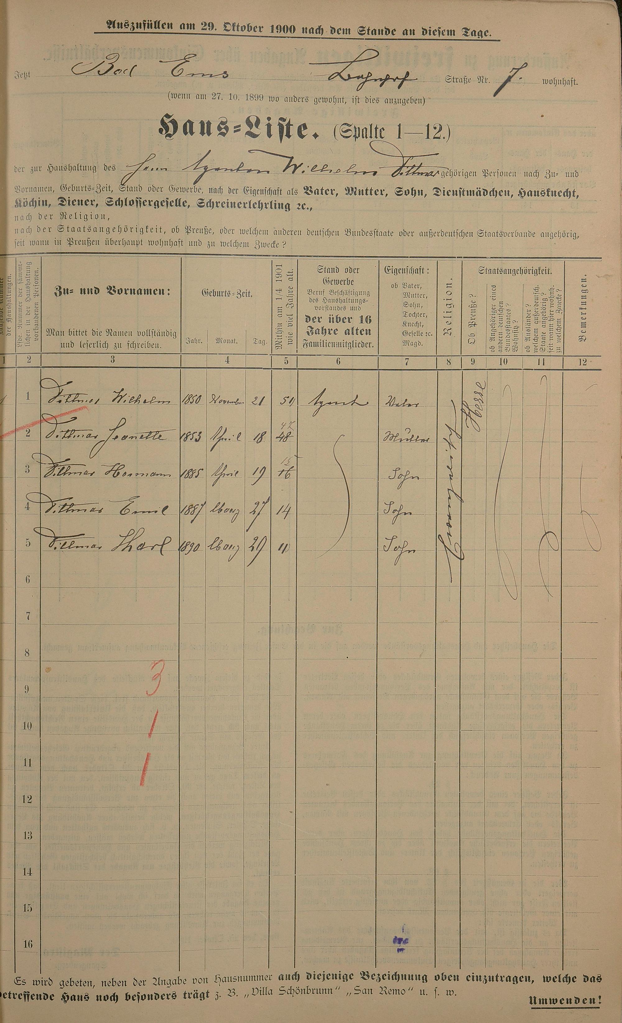 Personenstandsaufnahme zur Klassensteuerrolle für 1901