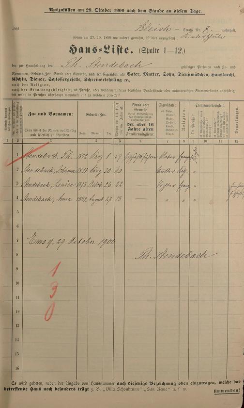 Personenstandsaufnahme zur Klassensteuerrolle für 1901