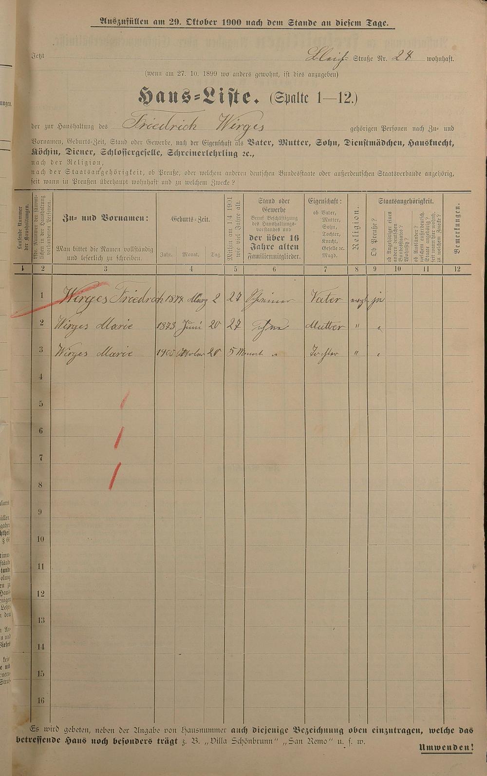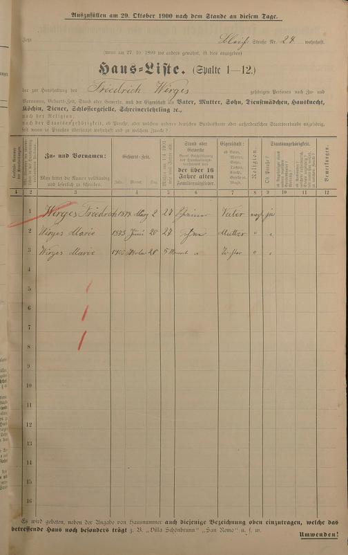 Personenstandsaufnahme zur Klassensteuerrolle für 1901