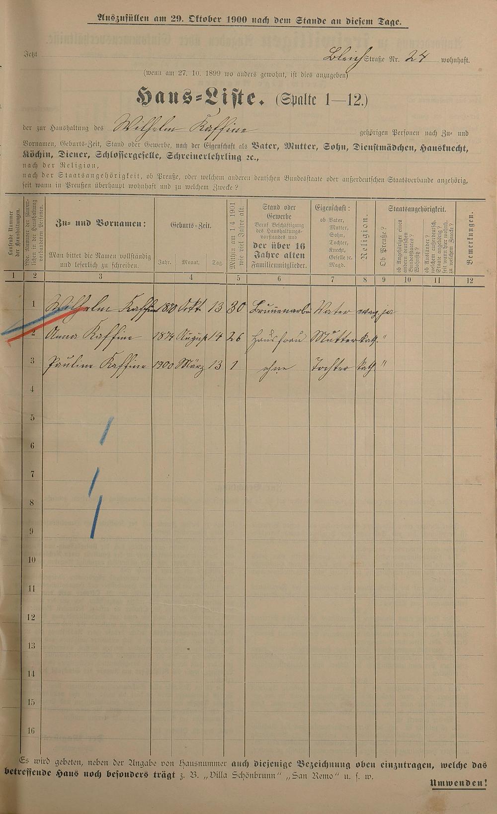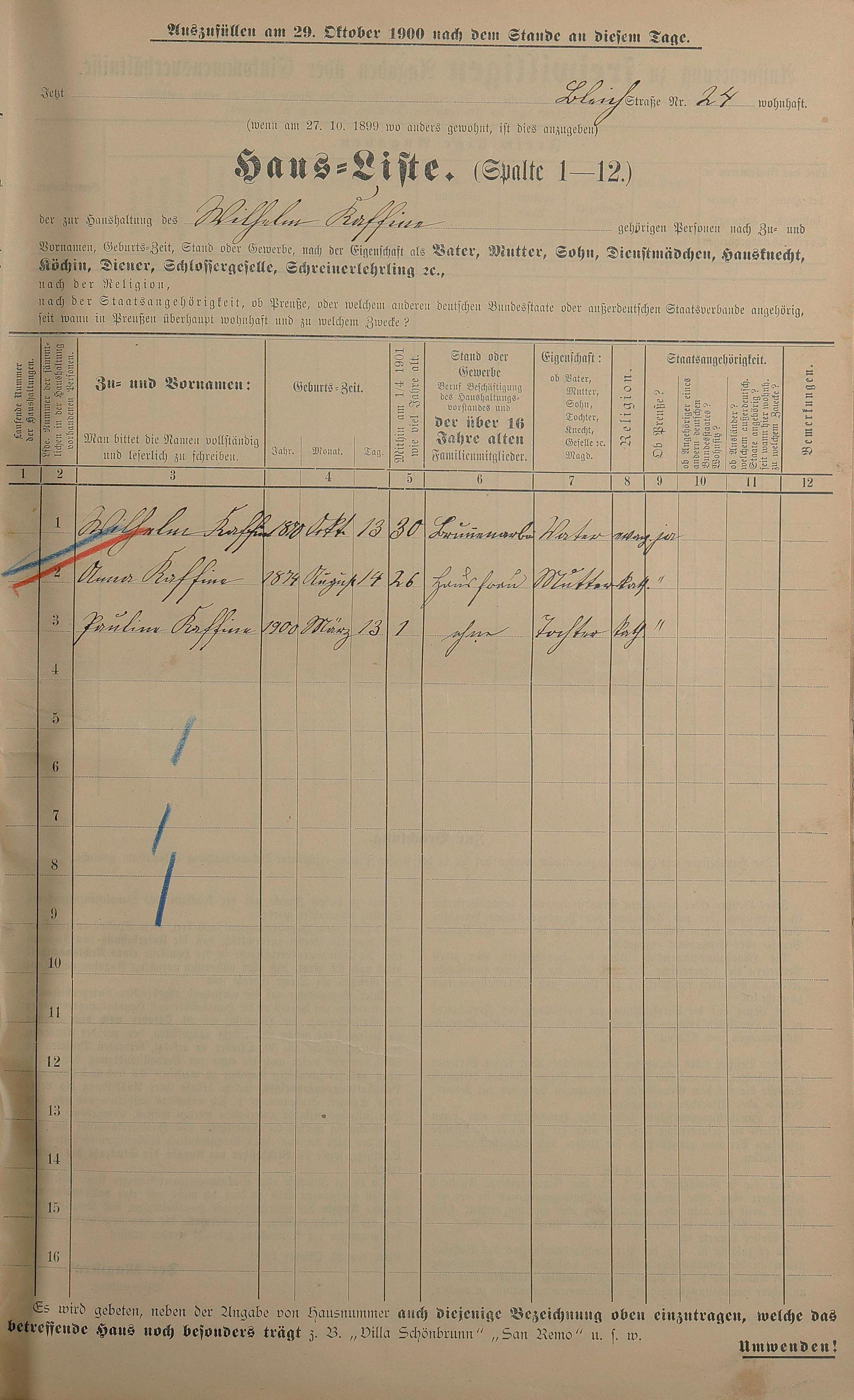 Personenstandsaufnahme zur Klassensteuerrolle für 1901