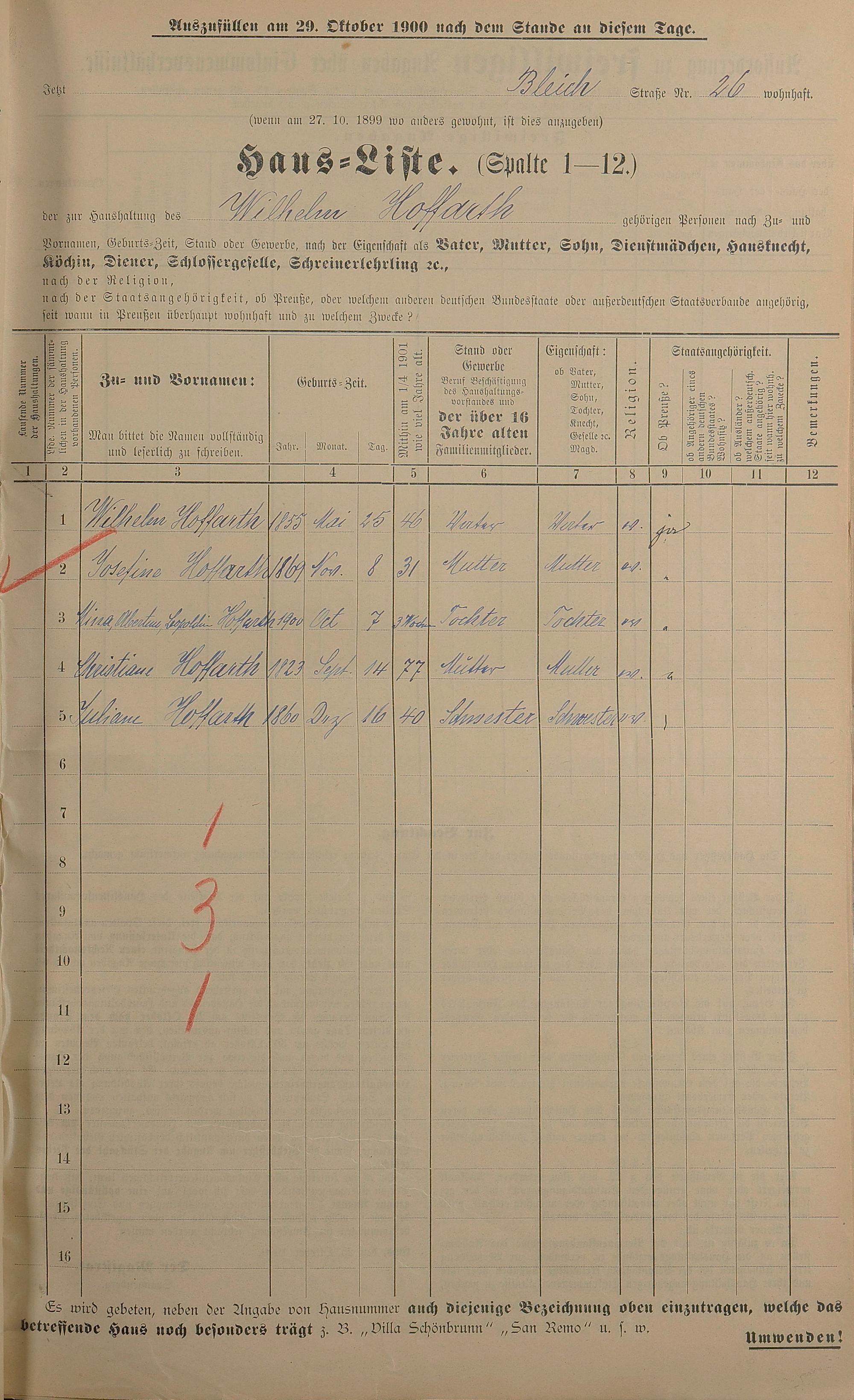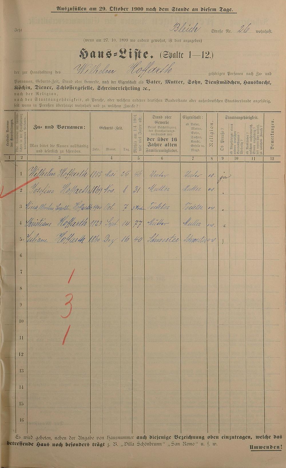 Personenstandsaufnahme zur Klassensteuerrolle für 1901