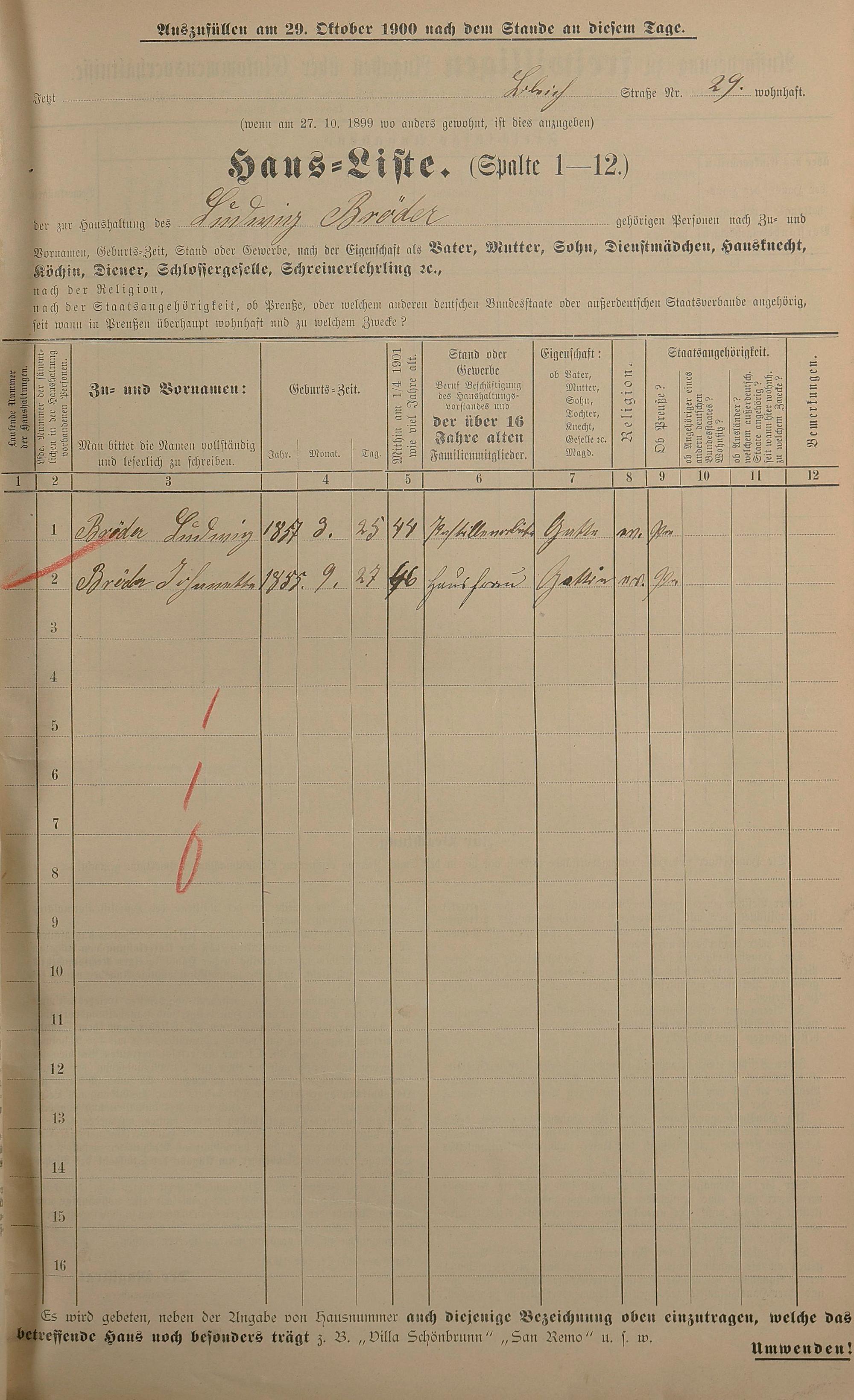 Personenstandsaufnahme zur Klassensteuerrolle für 1901