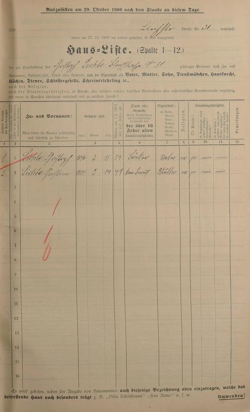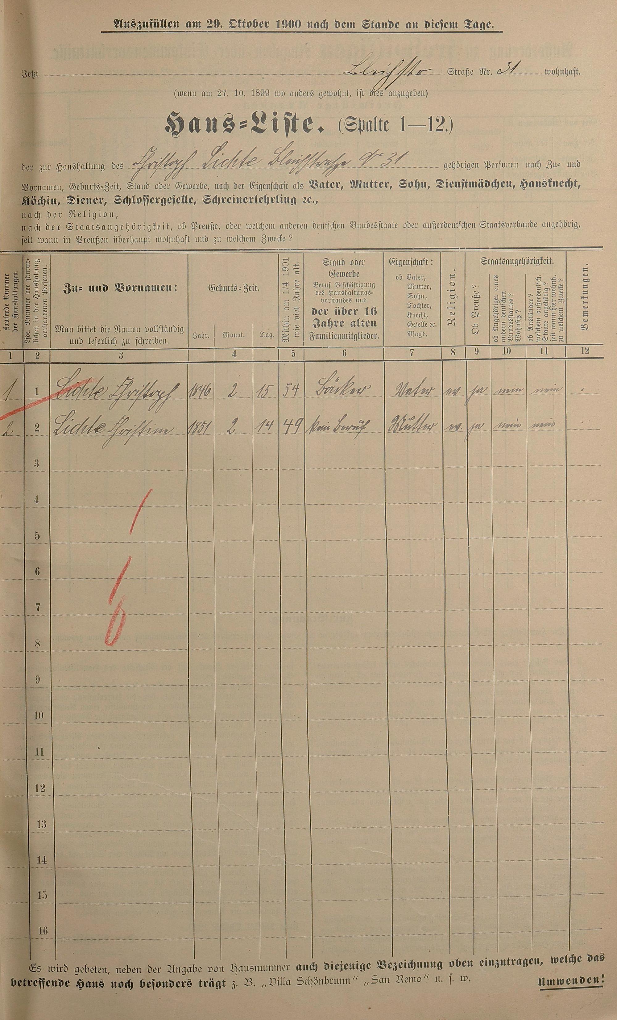 Personenstandsaufnahme zur Klassensteuerrolle für 1901