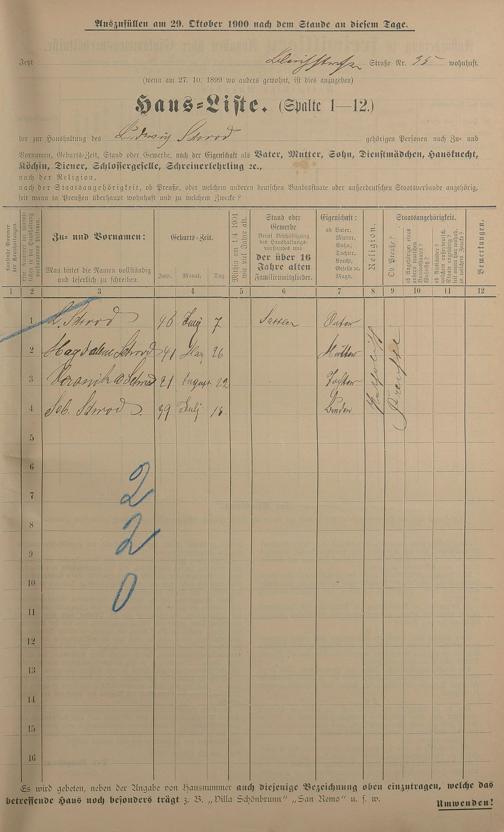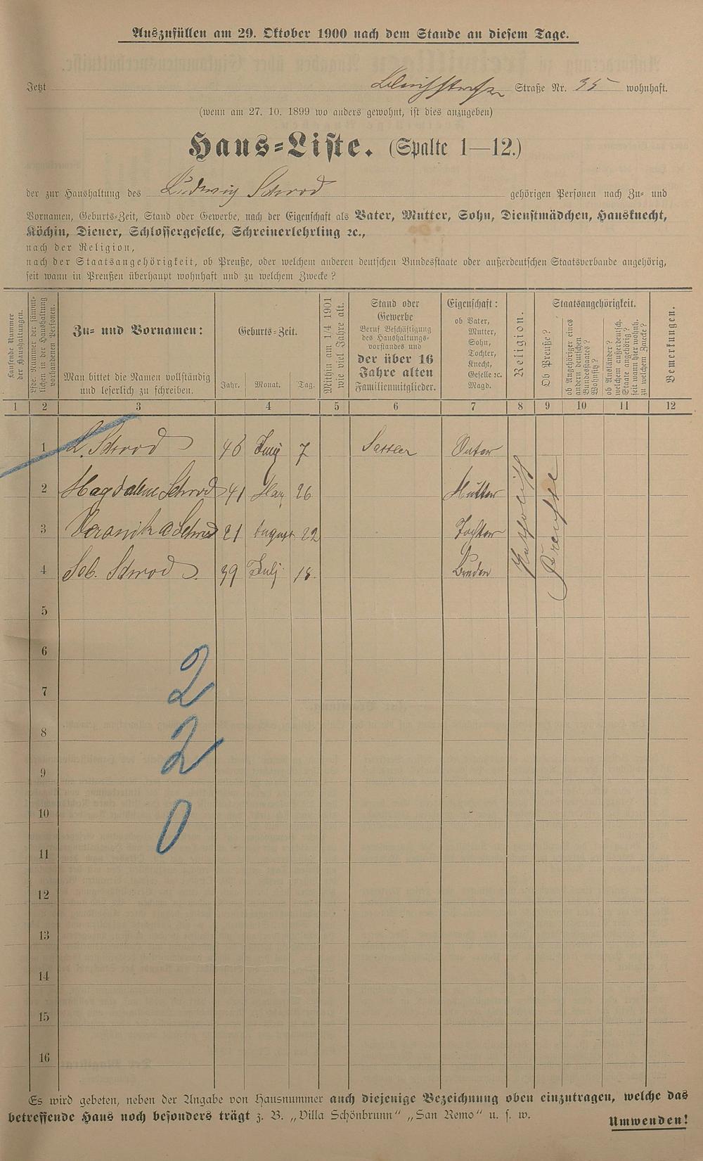 Personenstandsaufnahme zur Klassensteuerrolle für 1901