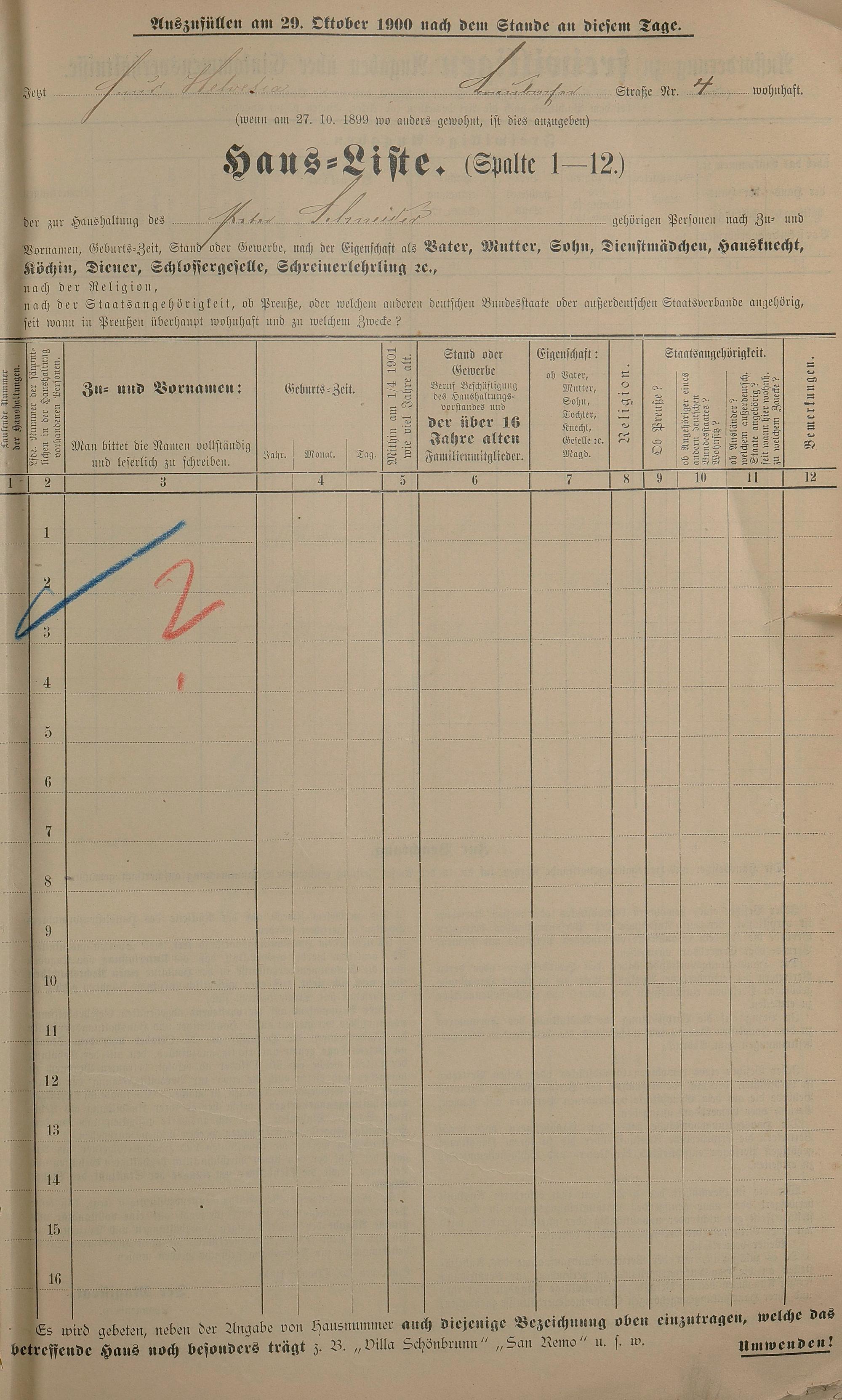 Personenstandsaufnahme zur Klassensteuerrolle für 1901