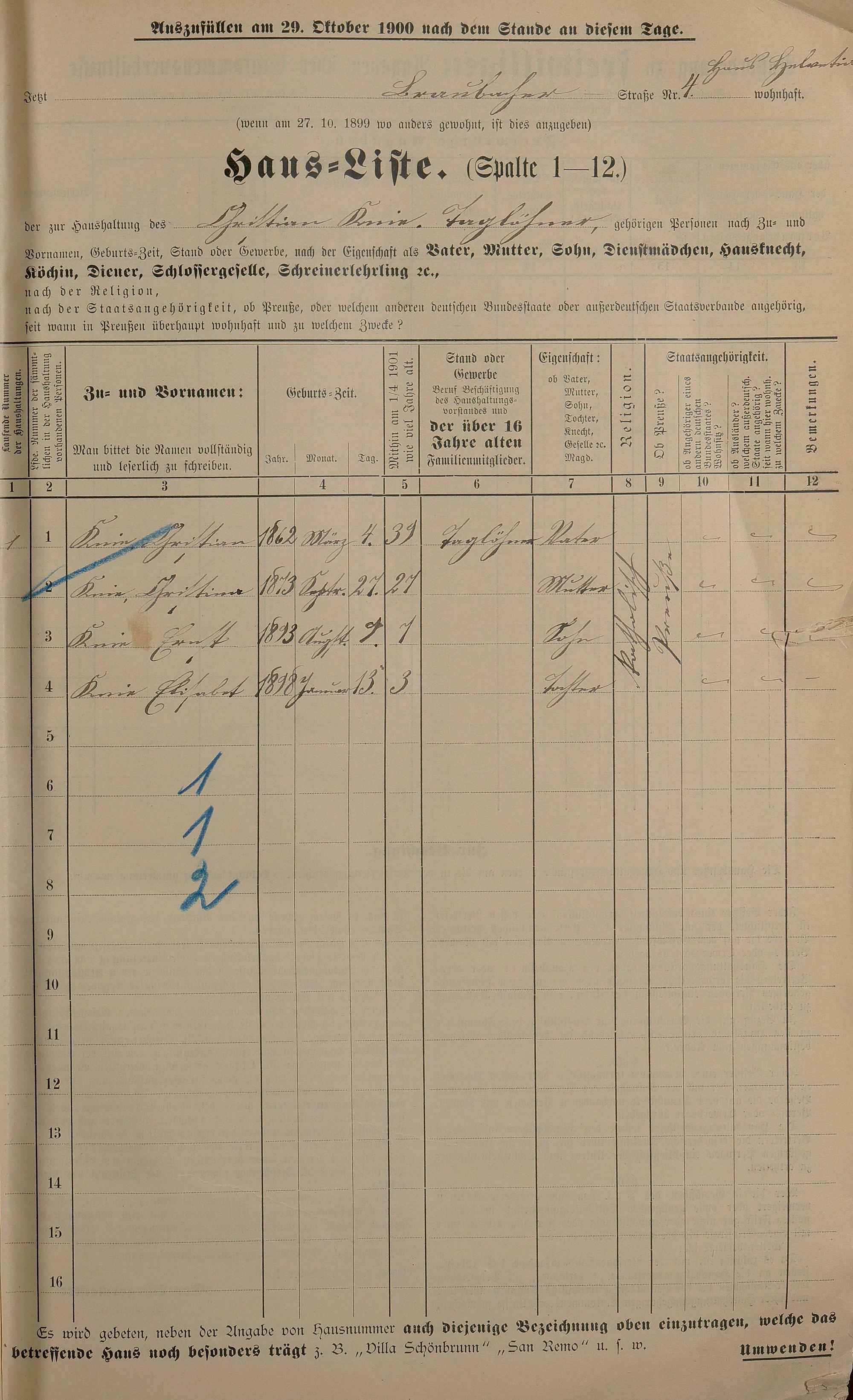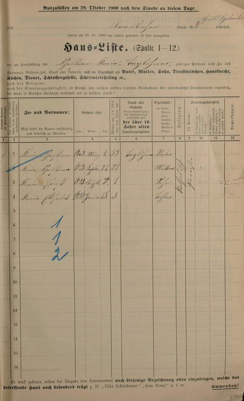 Personenstandsaufnahme zur Klassensteuerrolle für 1901