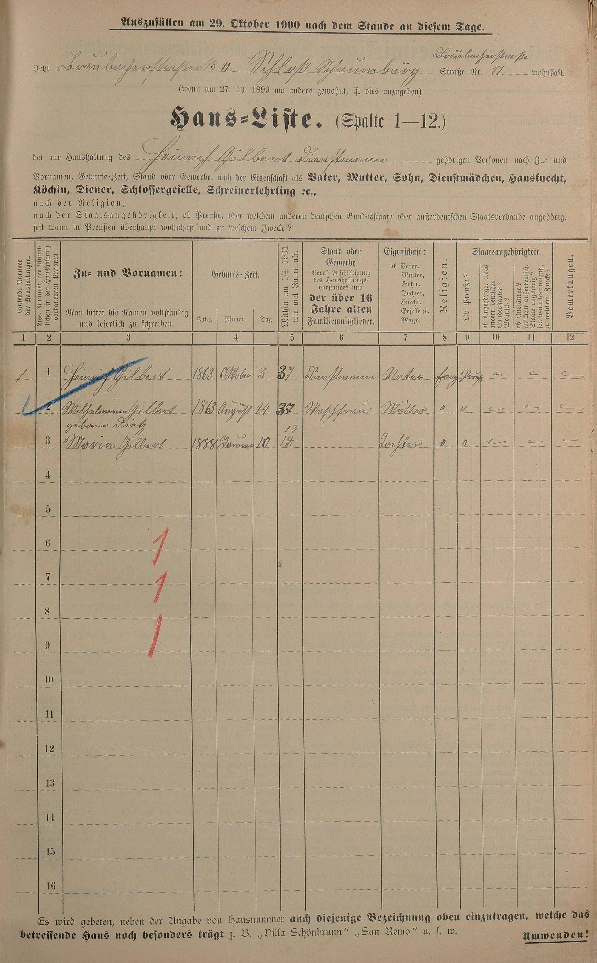 Personenstandsaufnahme zur Klassensteuerrolle für 1901